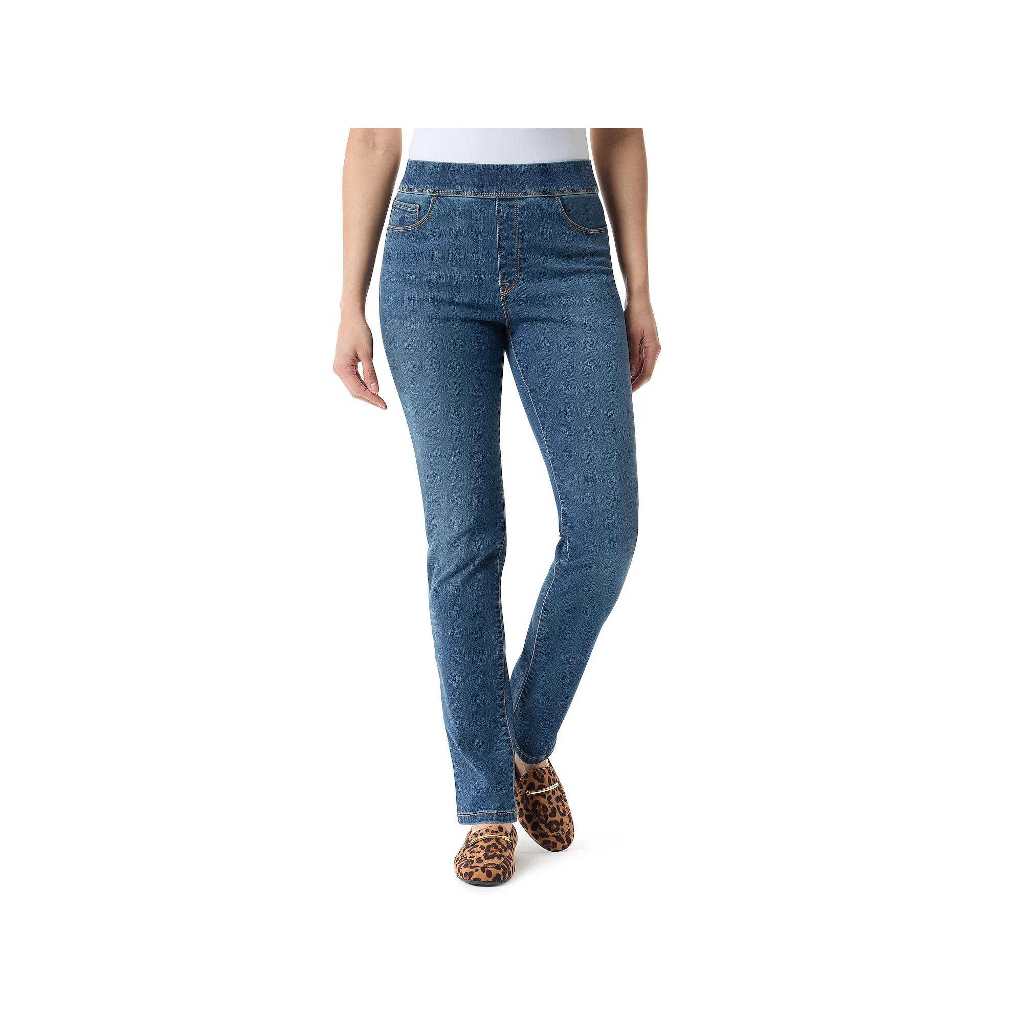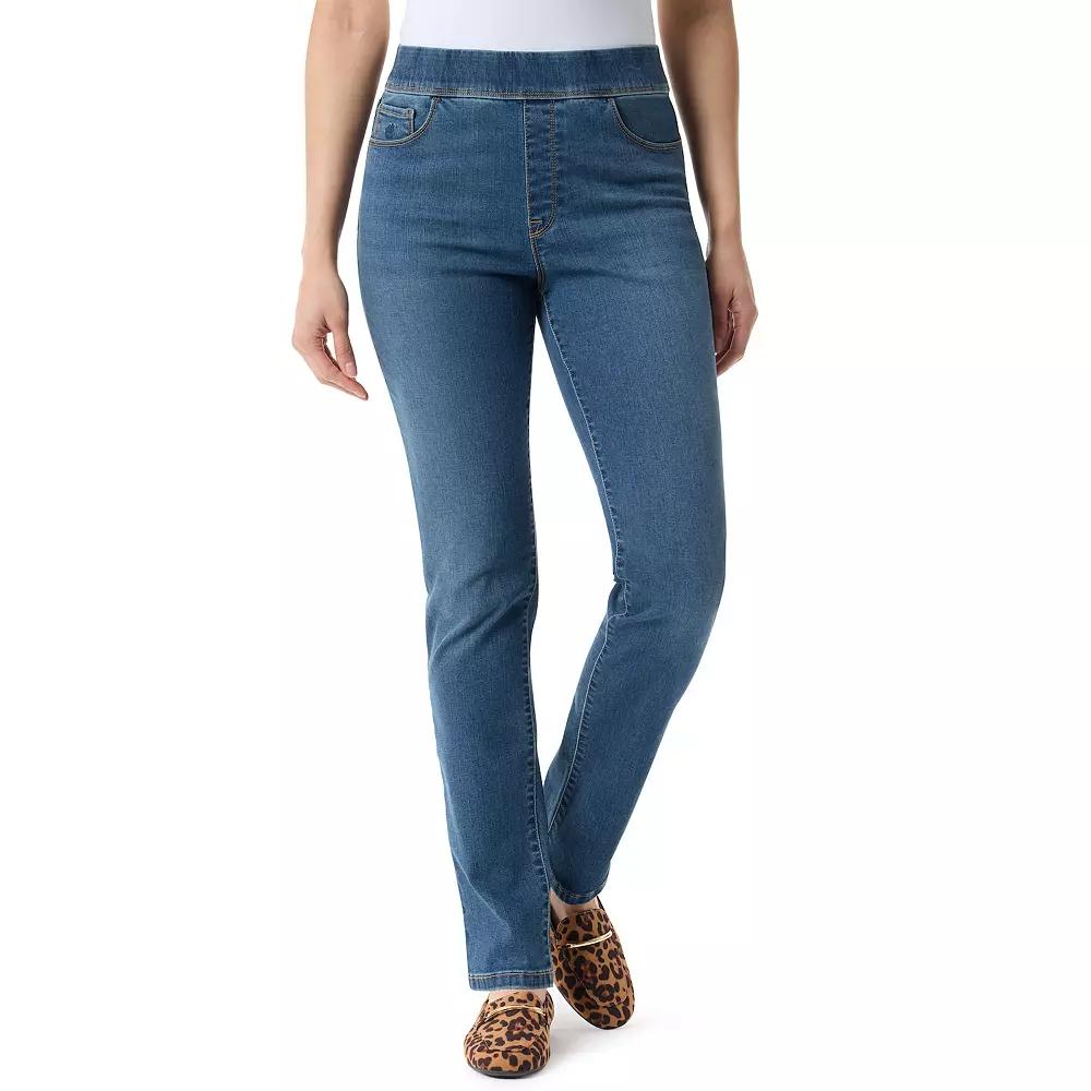 Upgrade your essentials wardrobe with these women's pull-on jeans from Gloria Vanderbilt. Click on this WOMEN'S GUIDE to find the perfect fit and more! - https://www.kohls.com/feature/womens-fit-guide.jsp. FEATURES: Elastic Waistband, 5 pockets, Straight hem, Unlined. FIT & SIZING: Slim straight fit, Short: 29-in. inseam, Regular/average: 31-in. inseam, 13 3/4-in. straight leg opening, High rise sits below the natural waistline, Fitted through the hip and thigh. FABRIC & CARE: Cotton, polyester, viscose, spandex, Machine wash, Imported. Size: 16 Short. Color: Gallatin W Whiskers. Gender: female. Age Group: adult. Material: DENIM.