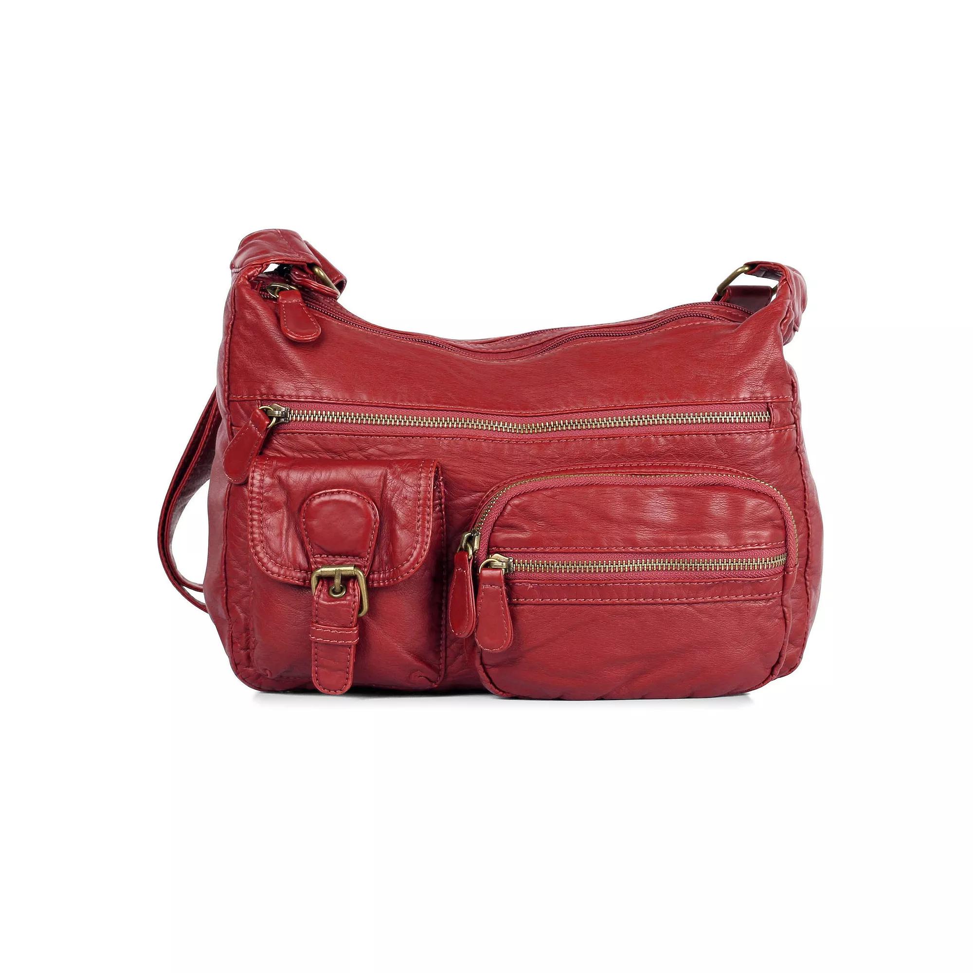Redefine the style of your everyday look with this stylish piece from Karla Hanson. Redefine the style of your everyday look with this stylish piece from Karla Hanson. HANDBAG FEATURES Water repellent Features a pre-wash treatment for a real leather feelHANDBAG DETAILS 13W x 4.3D x 9.4H Crossbody strap: 15 - 26 Adjustable crossbody strap Closure type: Zipper Exterior: 3 zip pockets, 1 magnetic snap pocket Interior: 1 zip pocket, 1 slip pocketCONSTRUCTION & CARE Polyurethane Lining: polyester Spot clean Imported Size: One Size. Gender: female. Age Group: adult.