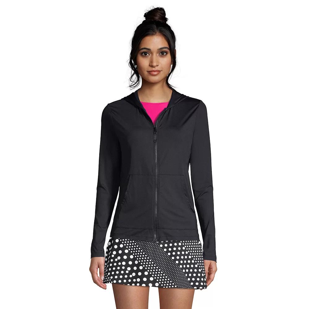 Go beyond the beach and stay covered up in style wearing this women's Lands' End rash guard cover-up, featuring UPF 50 sun protection. Kohl's Lands' End Women's Swim Size Chart - https://www.kohls.com/media/digital/ecom/size-charts/womens/html/Kohls_LandsEnd_Womens_Swim_SizeChart.html. Click on this WOMEN'S GUIDE to find the perfect fit and more! - https://www.kohls.com/feature/womens-fit-guide.jsp. UPF 50 sun protection, Zip front, Long sleeves, Hood, Kangaroo pouch pocket, Unlined. FIT & SIZING: Low-Impact. FABRIC & CARE: Nylon, spandex, Hand wash, Imported. Size: X Large. Color: White. Gender: female. Age Group: adult. Material: NYLON SPANDEX.