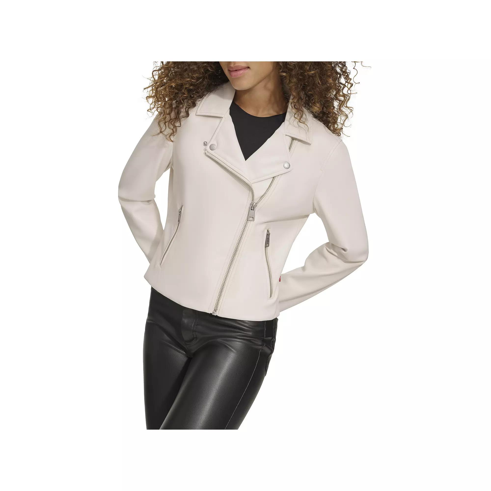 Water-resistant faux leather lends ultimate functionality to a slightly cropped moto jacket designed with the classic asymmetric zip closure. Asymmetric zip closure Notched collar Zip cuffs Front zip pockets Water-resistant Lined 100% polyurethane Machine wash, tumble dry Imported