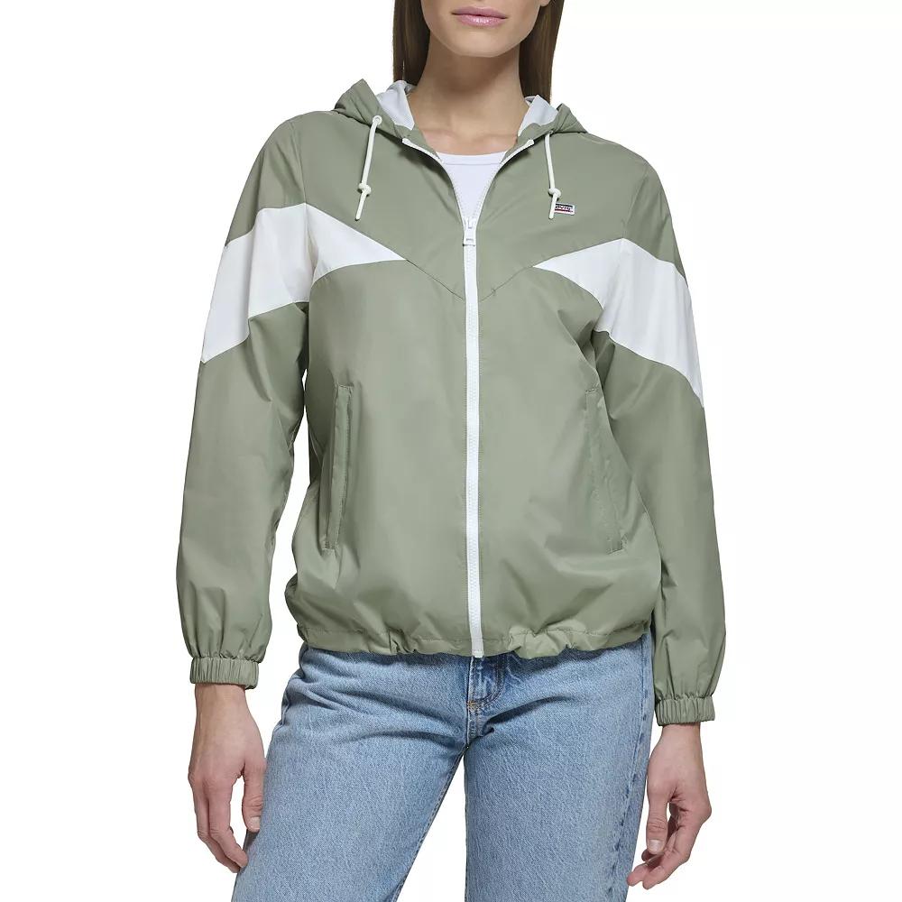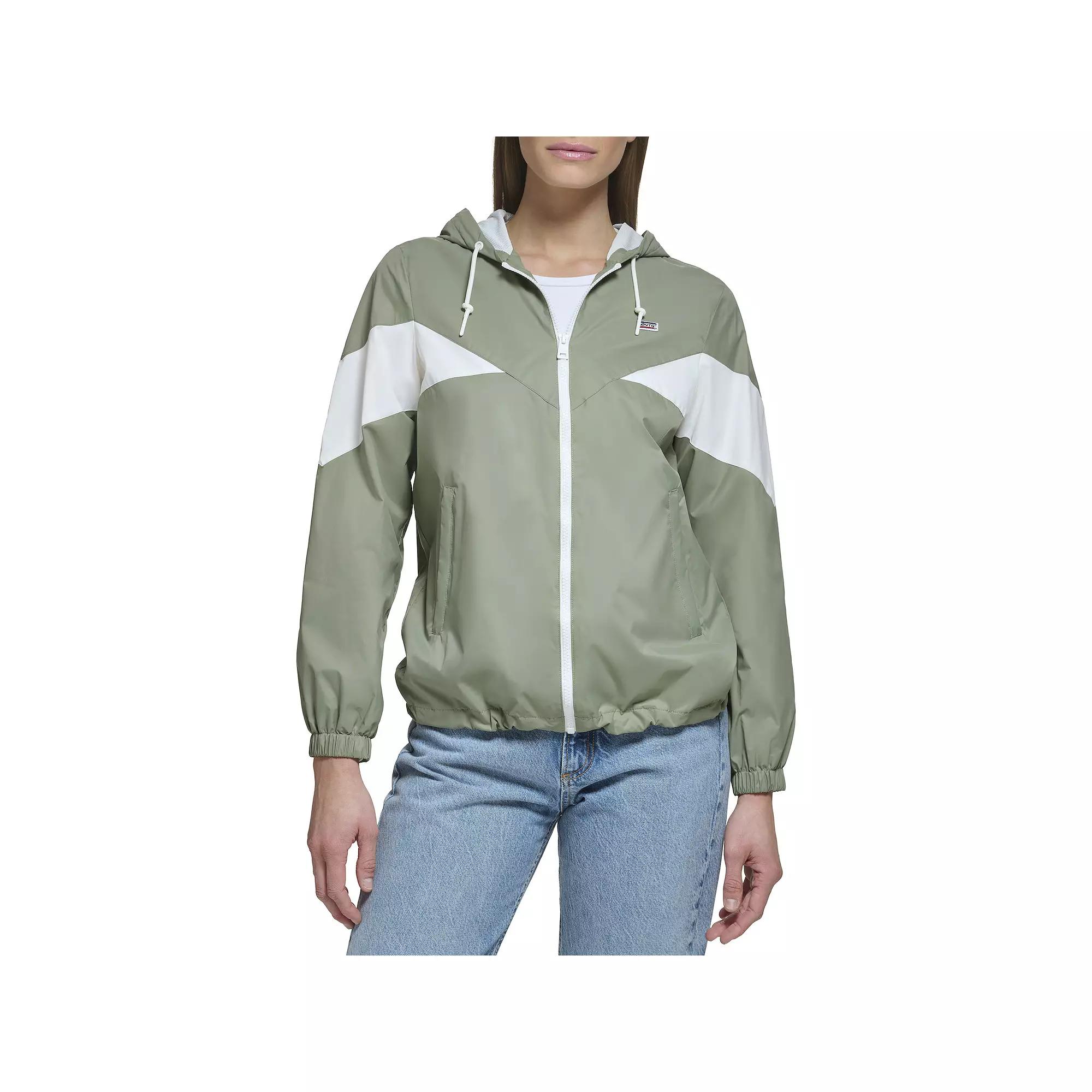 Brave the weather fearlessly with this Womens Levis Hooded Windbreaker Jacket.Click on this WOMENS GUIDE to find the perfect fit and more! Brave the weather fearlessly with this Womens Levis Hooded Windbreaker Jacket.Click on this WOMENS GUIDE to find the perfect fit and more! FEATURES Wind resistantWater resistantAttached drawstring hood 2 front side zipper pockets Adjustable drawcord hem Drawstring hood Zipper closure Elastic cuffs Long sleeves Fully linedFIT & SIZING Regular fit 26 1/2-in. length from shoulder to hem Designed to hit just below the waist LightweightFABRIC & CARE Polyester Machine wash delicate and tumble dry low Imported Size: X Small. Color: Med Green. Gender: female. Age Group: adult.