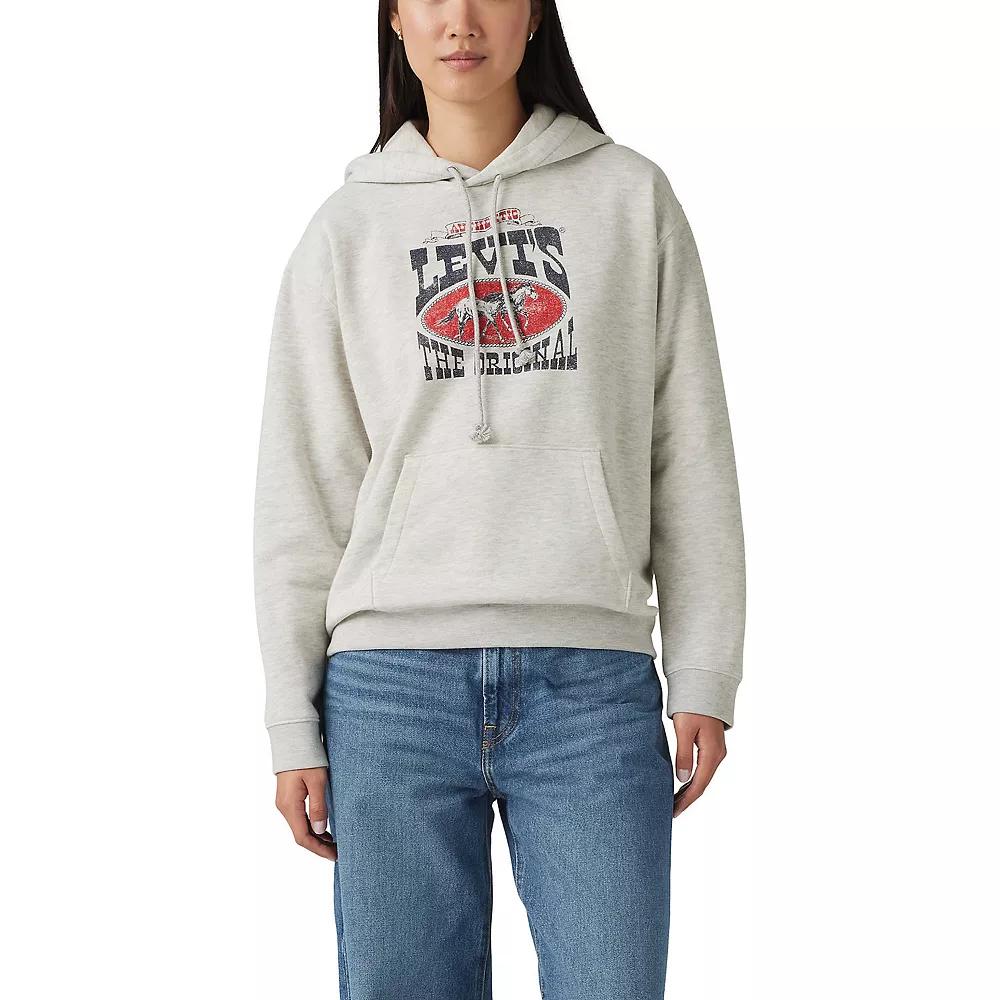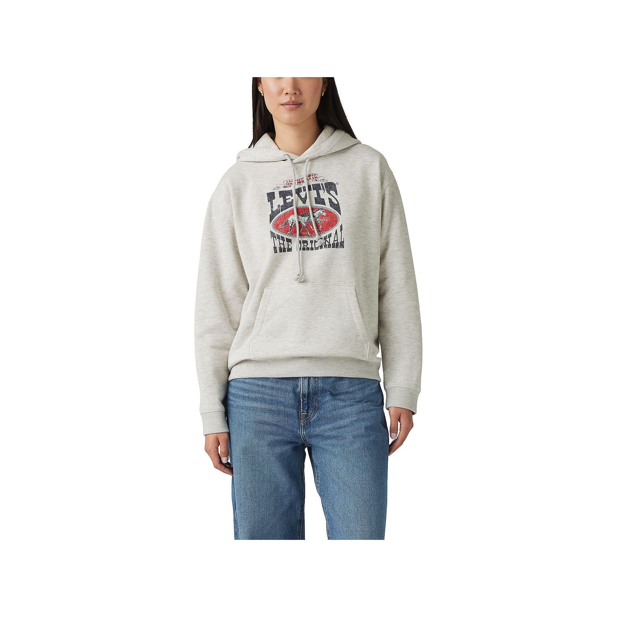 You'll absolutely love the cozy comfort and classic look of this Levi's hoodie. Long sleeves Crewneck Attached hood with functional drawstring 1 pocketFABRIC & CARE Cotton, polyester Machine wash ImportedSUSTAINABILITY FEATURES Supports more sustainable cotton farming Size: Large. Color: Horse Orbit Gray. Gender: female. Age Group: adult. Material: Fleece.