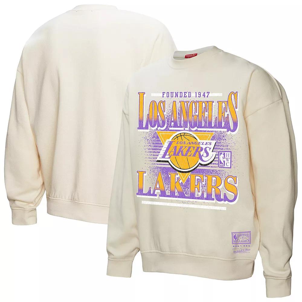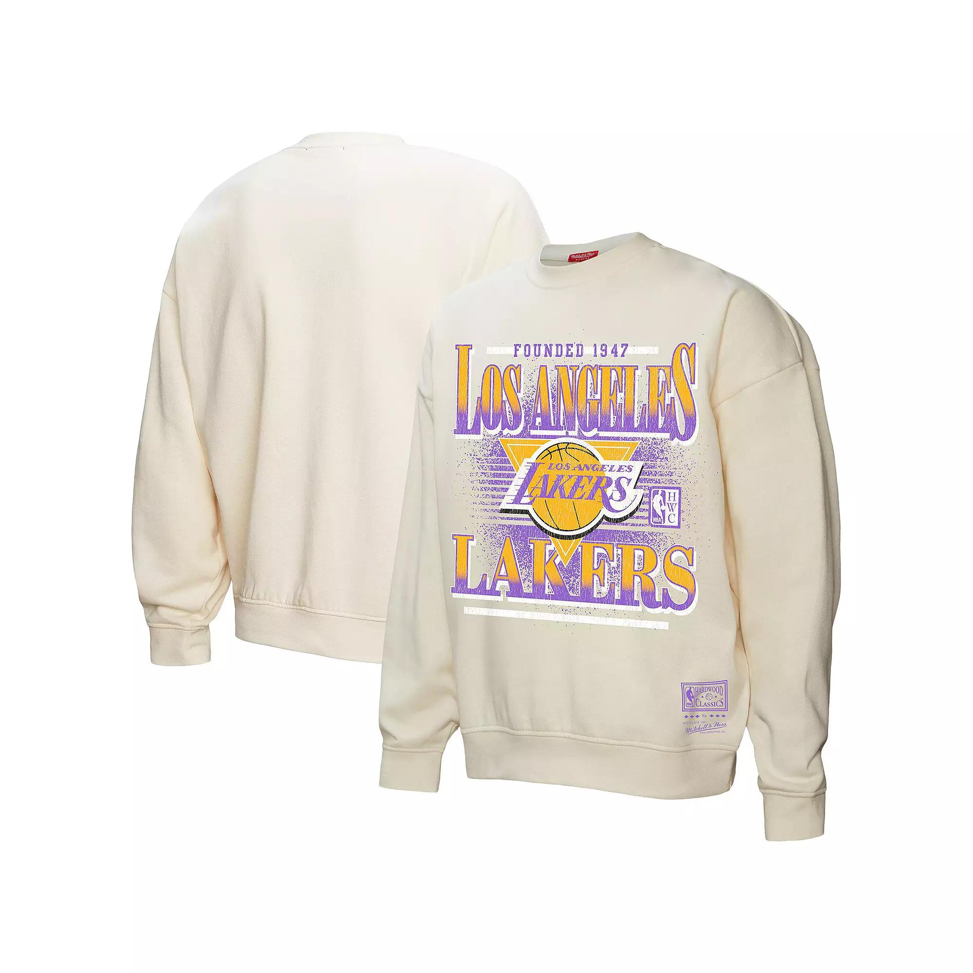 Channel vintage Los Angeles Lakers style with this Mitchell & Ness Oversprayed Pullover Sweatshirt. Fleece lining provides added warmth and a soft feel, making it perfect for those chilly game days or casual outings. The screen print graphics add a stylish touch, showcasing your Los Angeles Lakers pride with a unique oversprayed design.Channel vintage Los Angeles Lakers style with this Mitchell & Ness Oversprayed Pullover Sweatshirt. Fleece lining provides added warmth and a soft feel, making it perfect for those chilly game days or casual outings. The screen print graphics add a stylish touch, showcasing your Los Angeles Lakers pride with a unique oversprayed design.PRODUCT FEATURESLong sleeveFleece lining provides added warmth and a soft feelScreen print graphicsMidweight sweatshirt suitable for moderate temperaturesCrew neck provides a traditional look and is comfortable to wear all dayImportedBrand: Mitchell & NessPulloverMachine wash, tumble dry lowOfficially licensedMaterial: 60% Cotton/40% Polyester - Body; 96% Cotton/4% Spandex - Trim Size: XL. Color: Beige. Gender: female. Age Group: adult.