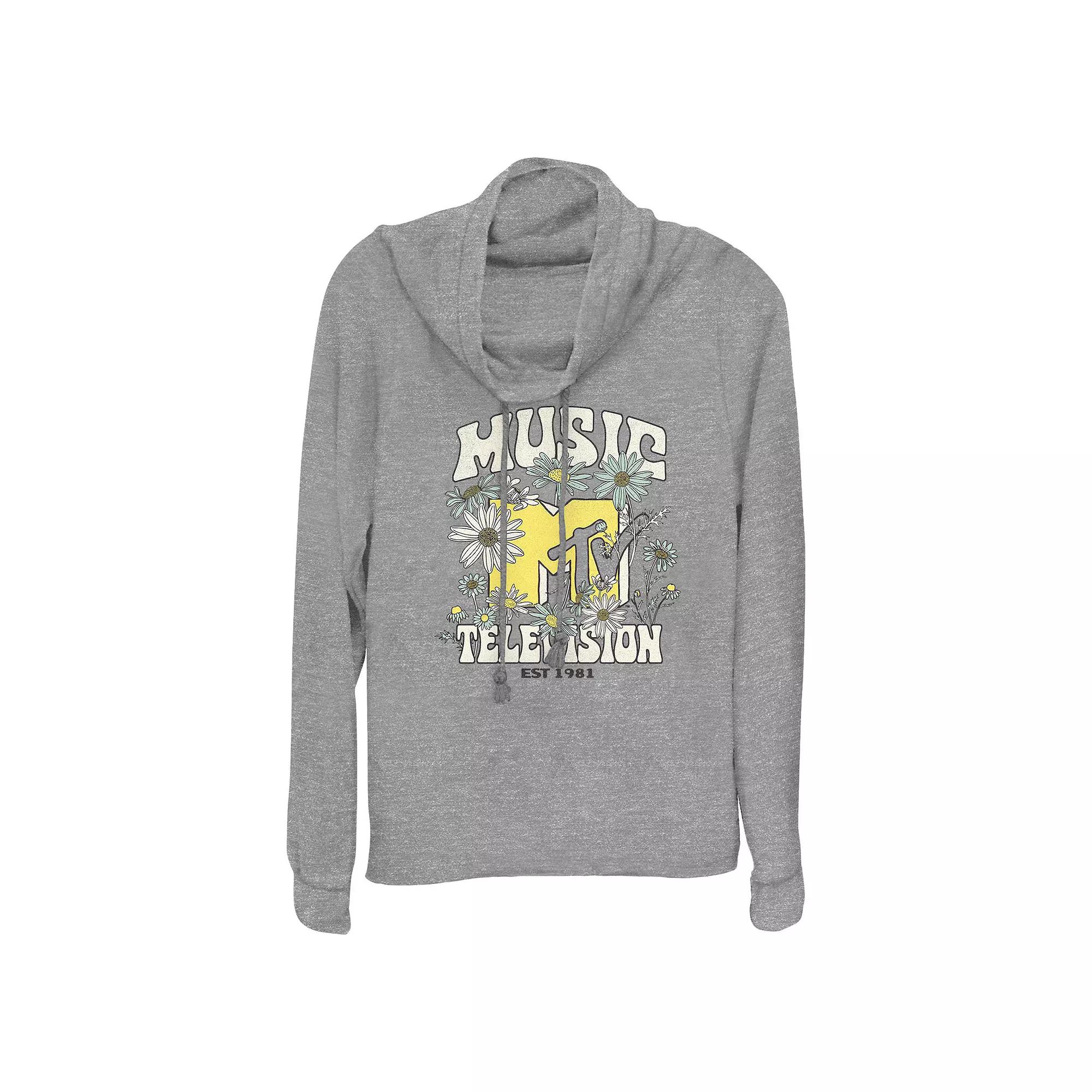 Give your wardrobe a Spring refresh with this Women's MTV Springtime Floral Logo Cowlneck Graphic Lightweight Long Sleeve. FEATURES: Cowlneck, Long sleeves. FABRIC & CARE: Polyester, rayon, spandex, Machine wash, Imported. Size: X Large. Color: Gray Heather. Gender: female. Age Group: adult. Material: POLY / RAYON / SPANDEX.
