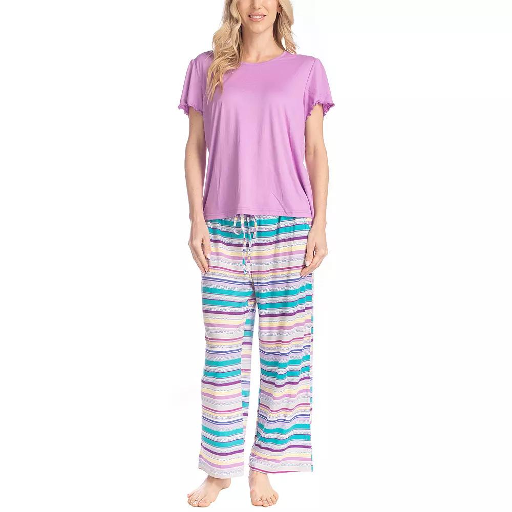 You'll love the look and feel of this women's MUK LUKS Artistic Garden pajama top & pajama pants set. Click on this INTIMATES & SLEEPWEAR GUIDE to find the perfect fit and more!You'll love the look and feel of this women's MUK LUKS Artistic Garden pajama top & pajama pants set. Click on this INTIMATES & SLEEPWEAR GUIDE to find the perfect fit and more!FEATURES 2-piece set includes: pajama top and pajama pants Top: short sleeves, crewneck Pants: covered elastic waistband, 2 pocketsFIT & SIZING Relaxed fit 25-in. inseam 8 1/2-in. straight leg opening Midrise sits on the high hipFABRIC & CARE Polyester, spandex Machine wash and tumble dry Imported Size: X Large. Color: Rainbow Stripe. Gender: female. Age Group: adult.