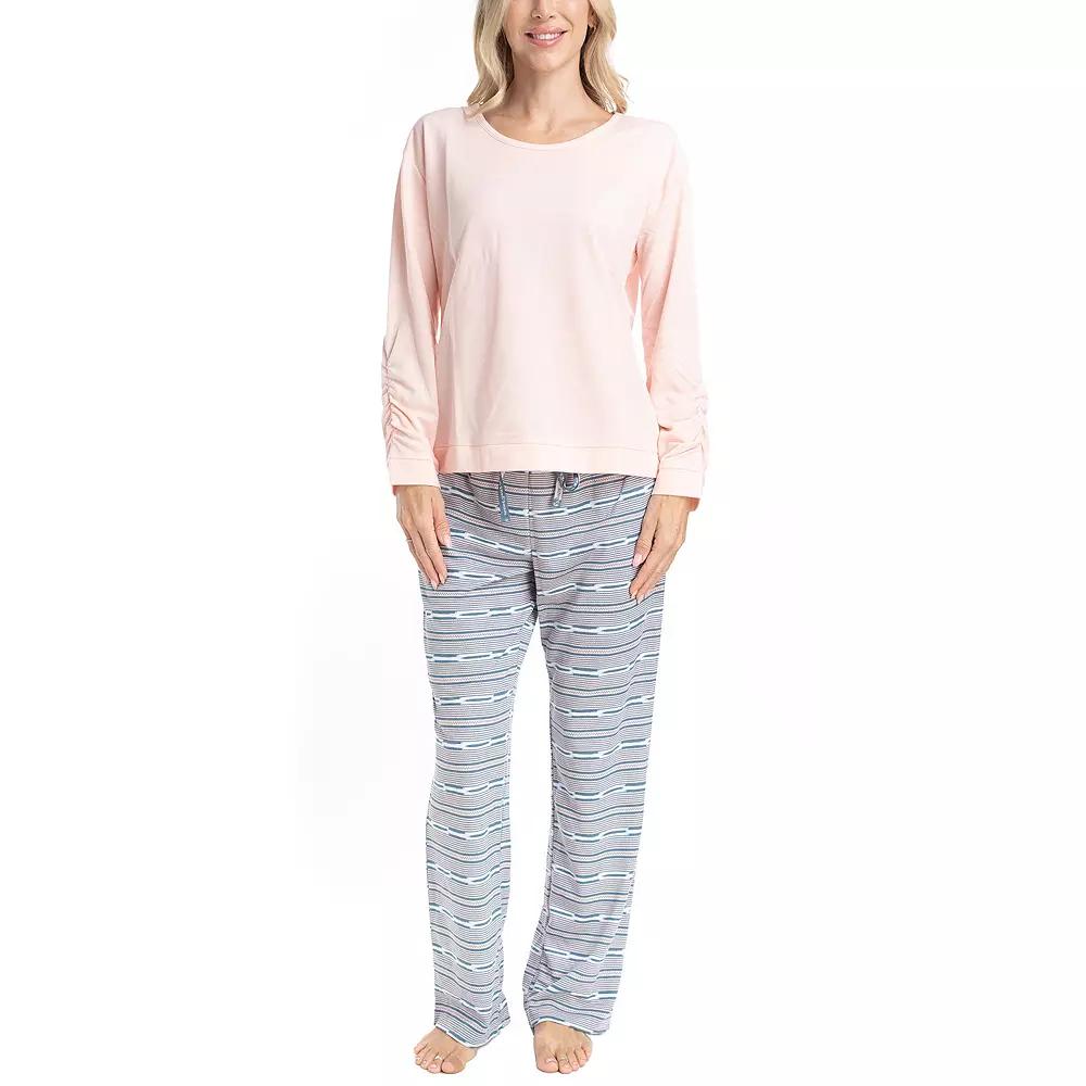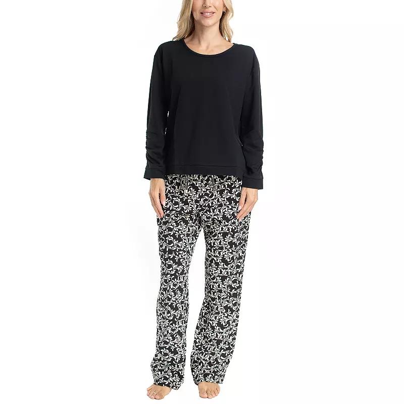 Experience ultimate comfort with this supersoft pajama set featuring a relaxed fit that moves with you, ensuring a cozy night’s sleep. The tagless design allows for irritation-free wear, making it your perfect companion for lazy weekends and peaceful evenings. Click on this INTIMATES & SLEEPWEAR GUIDE to find the perfect fit and more! - https://www.kohls.com/feature/womens-sleepwear-and-intimates-guide.jsp. FEATURES: Relaxed fit for enhanced comfort, Tagless design eliminates irritation, Supersoft feel for all-day wear. FIT & SIZE: Relaxed fit, Midrise sits on the high hip, Average: 29-in. inseam, Bootcut 7 1/2-in. leg opening, Covered elastic waistband. DETAILS: Includes: top and pants, No closure - pull-on styling, Crewneck, Long sleeves, 2 functional pockets, Imported. MATERIAL & CARE: Body: polyester, spandex, Machine wash and tumble dry low, Soft knit fabrication. Size: Medium. Color: Black. Gender: female. Age Group: adult. Material: POLY BLEND.