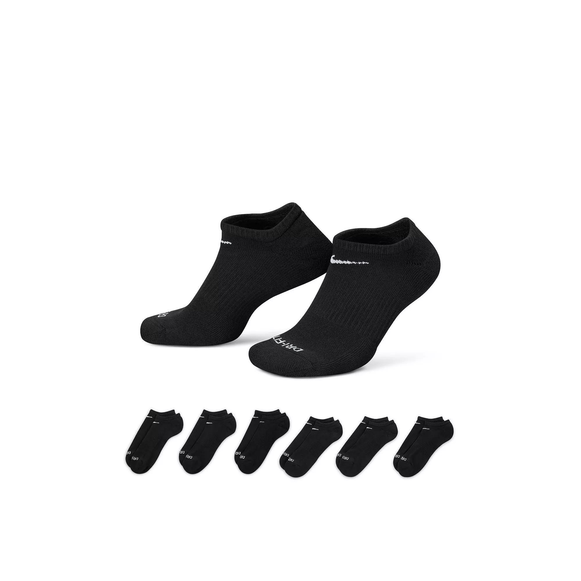 Power through your workout with the Nike Everyday Plus Cushion No-Show Training Socks (6 Pair). Dri-FIT technology helps you stay dry and comfortable. Breathable mesh at the top of the foot for enhanced ventilation. Arch band contours around the foot for a locked in fit. No-show silhouette provides a low-profile feel. 70% cotton/27% polyester/2% spandex/1% nylon. Imported.