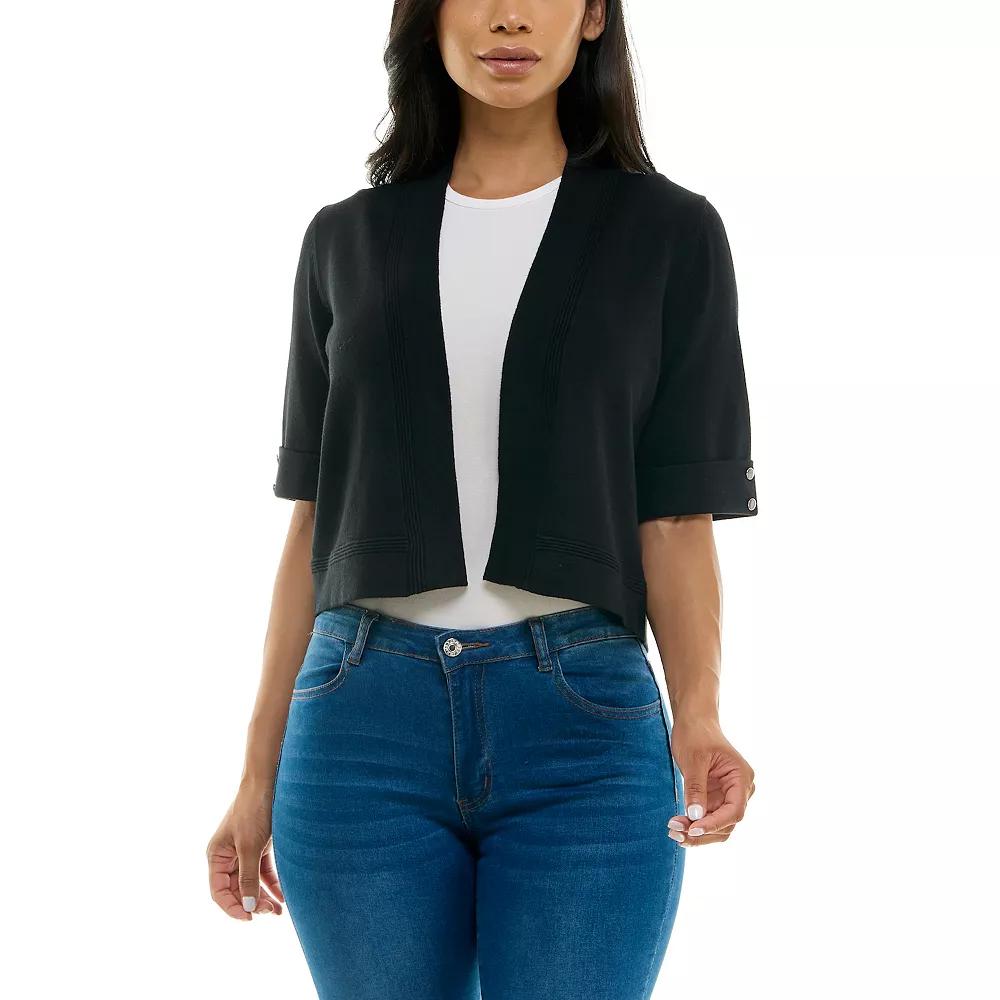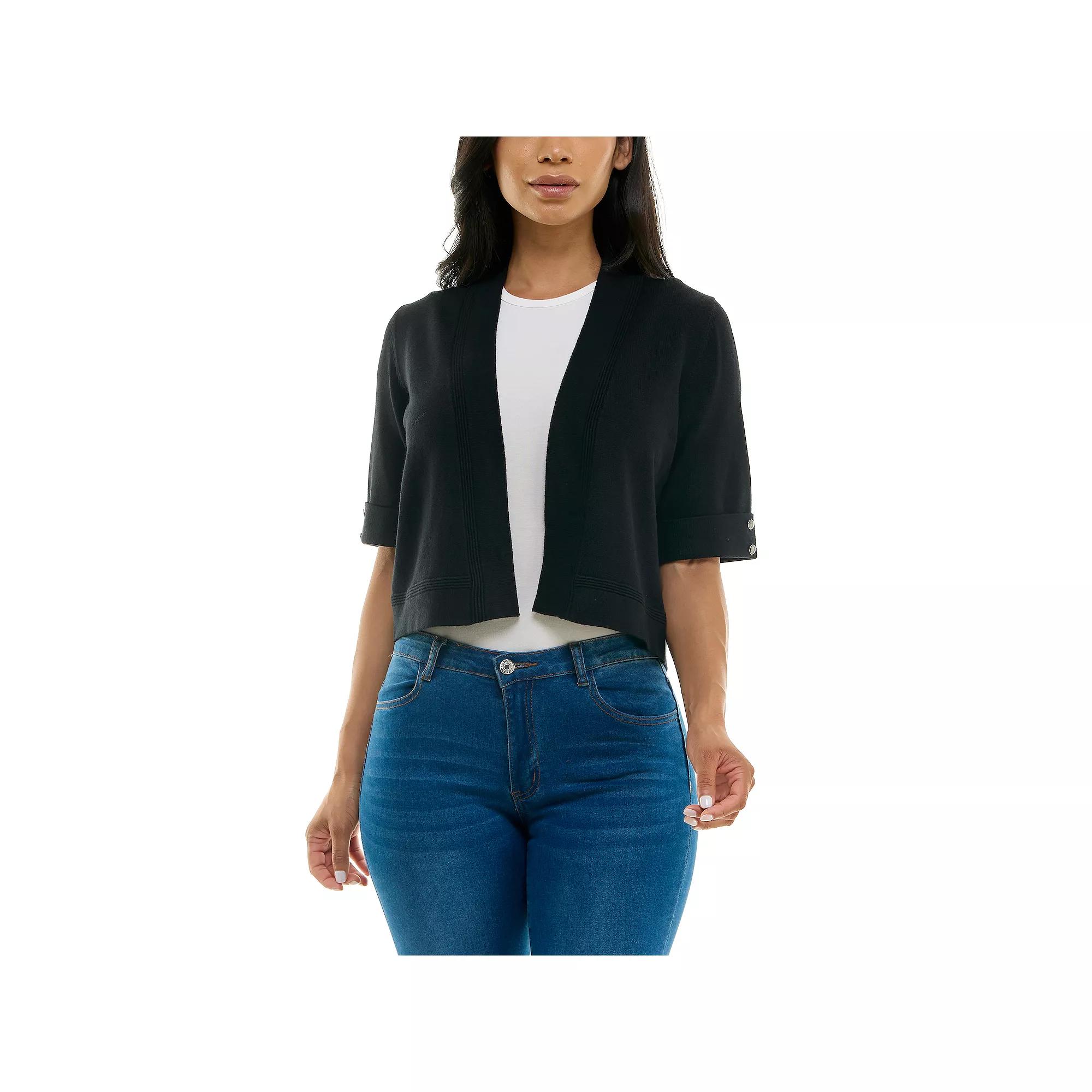 This cute Womens Nina Leonard Rolled Elbow Sleeve Bolero Top is the perfect pick to pull your next look together.Click on this WOMENS GUIDE to find the perfect fit and more! This cute Womens Nina Leonard Rolled Elbow Sleeve Bolero Top is the perfect pick to pull your next look together.Click on this WOMENS GUIDE to find the perfect fit and more! FEATURES Open front Elbow sleeves with roll tabs Button detailing Straight hemFIT & SIZING 18-in. length from shoulder to hemFABRIC & CARE Rayon, polyester Machine wash delicate and tumble dry low Imported Size: Large. Color: Black. Gender: female. Age Group: adult.