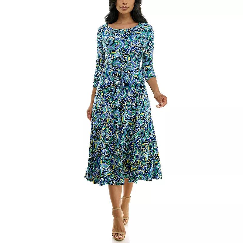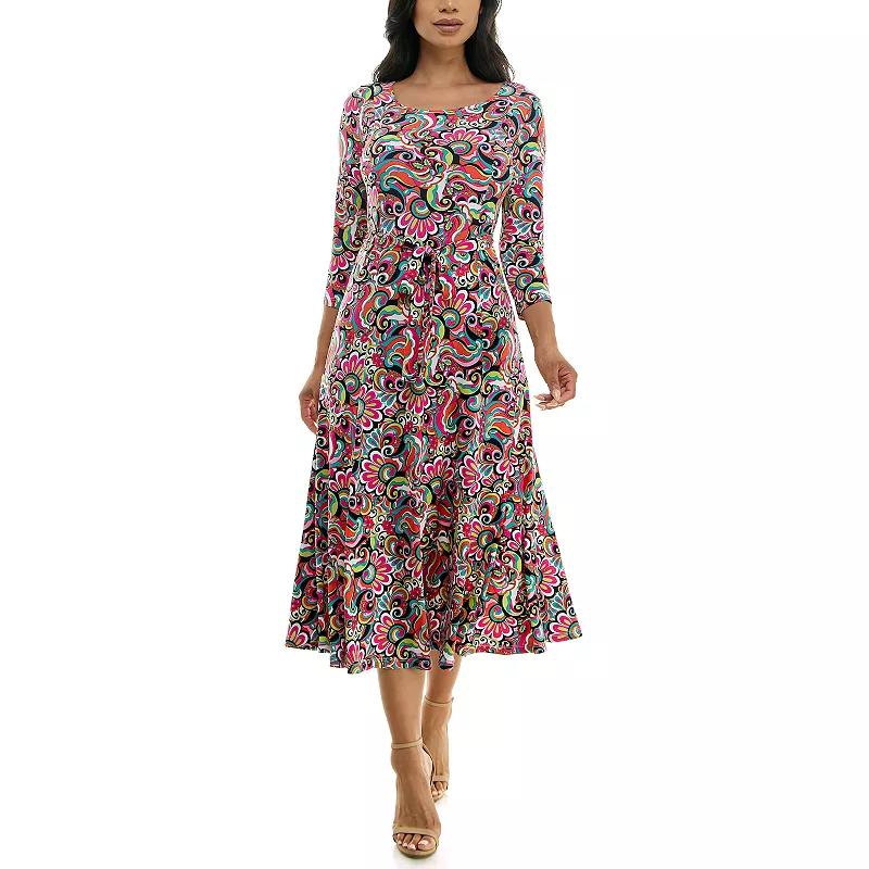 For style you're sure to love, reach for this Women's Nina Leonard Sylvia Midi Dress with Belt. Click on this WOMEN'S GUIDE to find the perfect fit and more! - https://www.kohls.com/feature/womens-fit-guide.jsp. FEATURES: A-line silhouette, No closure - pullover styling, 3/4-length sleeves, Coordinating sash, Unlined, Scoopneck. FIT & SIZING: 48-in. length from shoulder to hem, Midi length hits below the knee. FABRIC & CARE: Polyester, spandex, Machine wash and tumble dry low, Imported. Size: Medium. Color: Cherry Team. Gender: female. Age Group: adult.