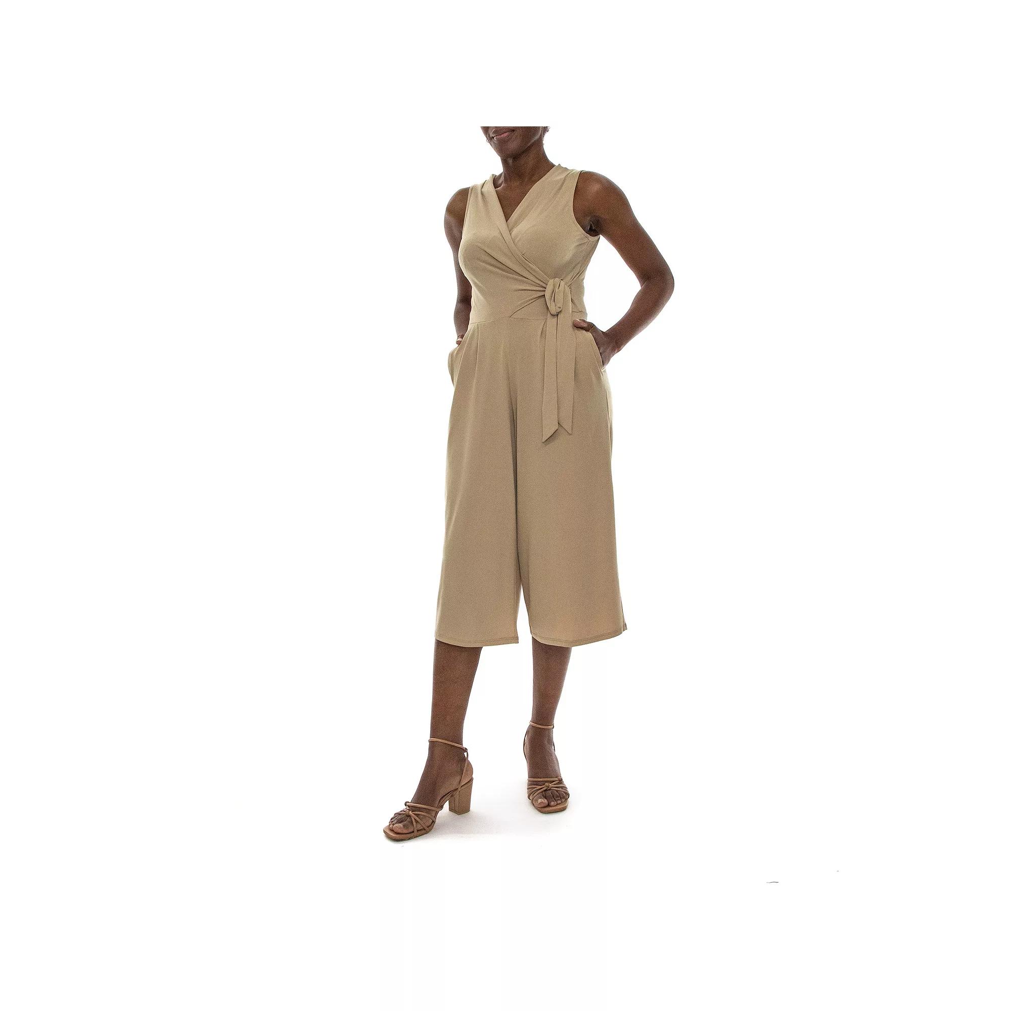 A faux-wrap bodice and wide-leg give this women's Nina Leonard jumpsuit a chic, warm-weather look. Finding the perfect fit and size for women's clothing requires basic measurements of your chest, waist, hips and inseam. Use this guide to learn more about sizing and everything Kohl's has to offer in women's fashion. Faux-wrap bodice Surplice neckline Sleeveless Pleated details 2 pockets Side-tie sash Wrinkle-resistant fabric blend FIT & SIZING 47-in. approximate overall length Wide-leg cut FABRIC & CARE Polyester, spandex Machine wash Imported Size: Small. Color: Dark Brown. Gender: female. Age Group: adult.