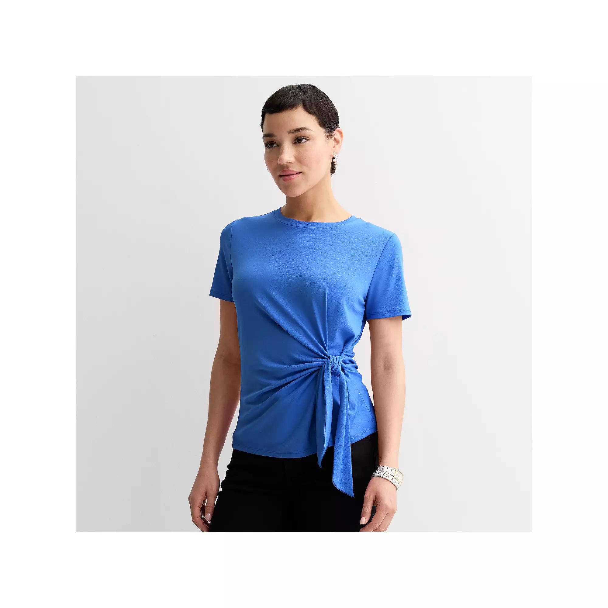 Elevate your everyday style with this Nine West top that perfectly combines comfort and chic. The cinch waist design flatters your figure while offering the versatility to dress it up or down, making it a must-have for any wardrobe. Click on this WOMEN'S GUIDE to find the perfect fit and more! - https://www.kohls.com/feature/womens-fit-guide.jsp. FEATURES: Soft, cozy feel, Flowy design, No ironing needed. FIT & SIZE: 23 3/4-in. length from shoulder to hem, Perfect fit with comfy and flowy fabric. MATERIAL & CARE: Polyester, spandex, Machine wash. DETAILS: No closure - pullover styling, Tie closure, Crewneck, Short sleeves, Imported. Size: Xxl. Color: Nicole Blue. Gender: female. Age Group: adult. Material: CREPE.