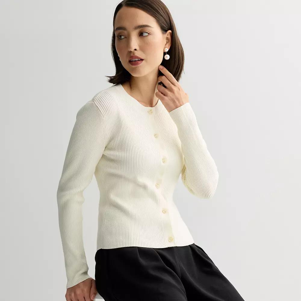 Elevate your wardrobe with this chic cardigan from Nine West, featuring a flattering ribbed design and a classic crew neck. Perfect for layering over your favorite tops, this versatile piece seamlessly transitions from casual outings to cozy evenings in, making it a must-have addition to your collection. Click on this WOMEN'S GUIDE to find the perfect fit and more! - https://www.kohls.com/feature/womens-fit-guide.jsp. FEATURES: Ribbed texture for added style and comfort, Classic crew neck design for versatile layering. FIT & SIZE: Regular fit, Straight hem, 20 1/2-in. length from shoulder to hem, Women's Petite sizing. DETAILS: Crewneck design, Long sleeves with ribbed cuffs, Button front closure, Set-in sleeves, Imported. MATERIAL & CARE: 53% rayon, 47% nylon, Rib allover, soft handfeel, Machine wash delicate. Size: XL Petite. Color: Daisy Dew. Gender: female. Age Group: adult. Material: OTHER MATERIAL.