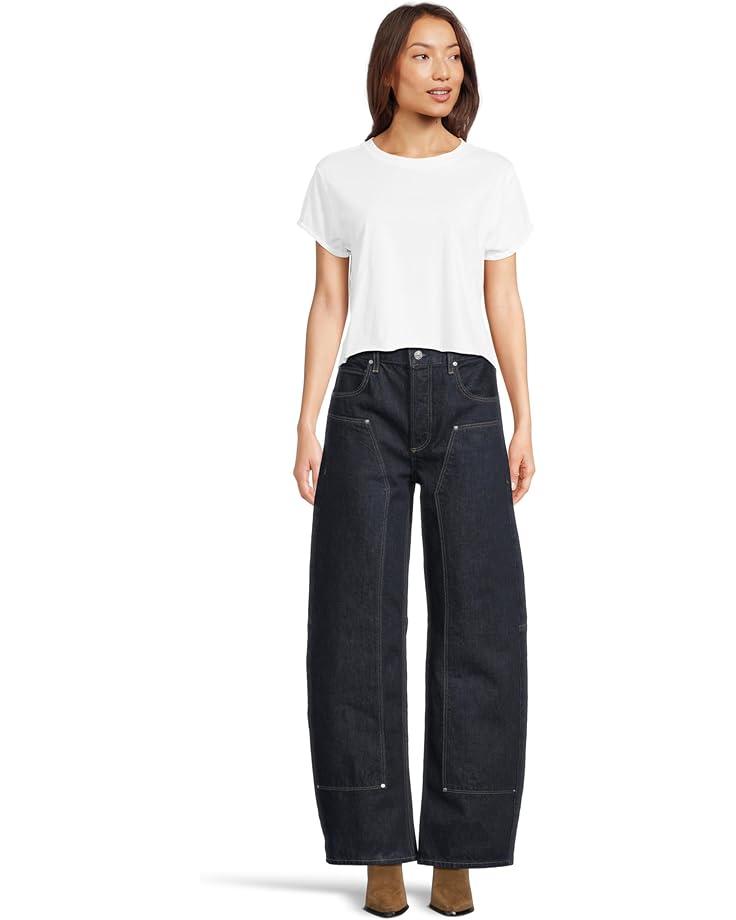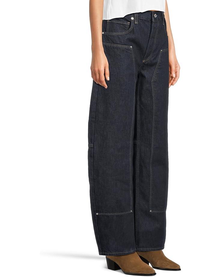 Meet Paige® Arellia 32 Workwear Pant, our new long and lean barrel leg design. This elevated style is cut from our new compact feminine rigid denim in dark rinse wash with workwear-style front panels and a 32" inseam. Due to a tighter construction, this new denim fabrication has a more subtle texture with a softer finish while still maintaining character and shape.