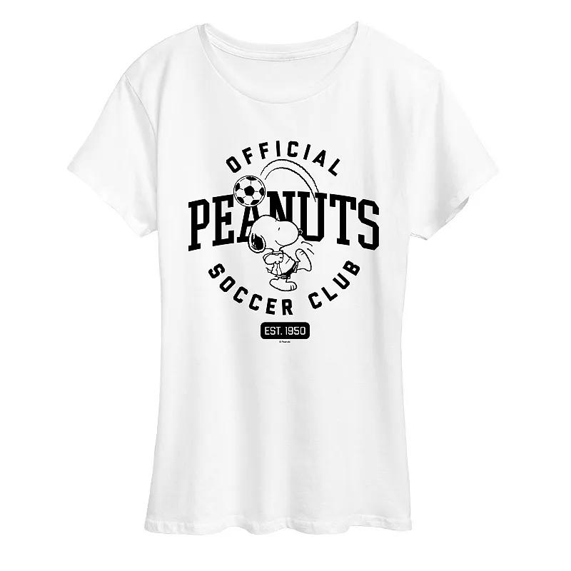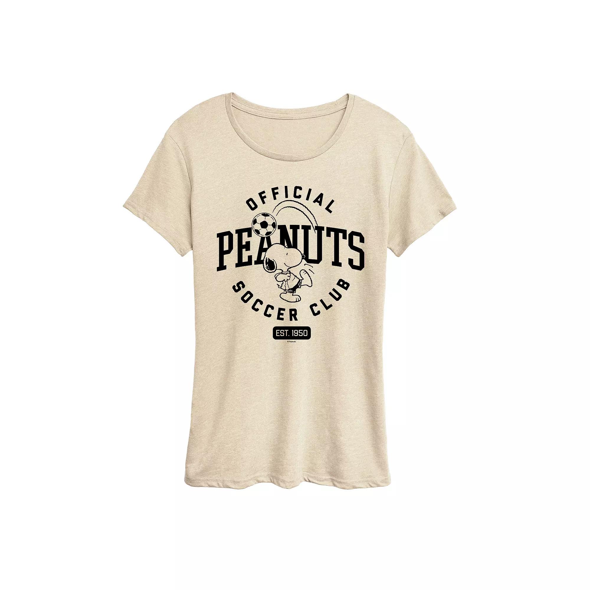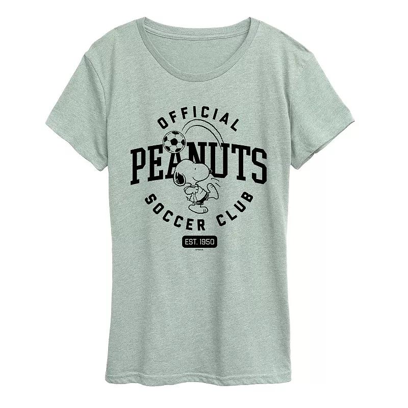 Show off your love for the game with this adorable graphic tee that perfectly blends fun and flair. Featuring beloved characters in an energetic soccer scene, this Peanuts shirt is perfect for match days or lounging with friends, bringing a smile to everyone around you while keeping your style effortlessly cool. Click on this WOMEN'S GUIDE to find the perfect fit and more! - https://www.kohls.com/feature/womens-fit-guide.jsp. FIT & SIZE: Classic fit. MATERIAL & CARE: Body: light grey: cotton, polyester; heather colors: cotton; solid colors: cotton, Care: machine wash. DETAILS: Scoopneck, Short sleeves, Printed in the USA. Size: Small. Color: Heather Foam. Gender: female. Age Group: adult.
