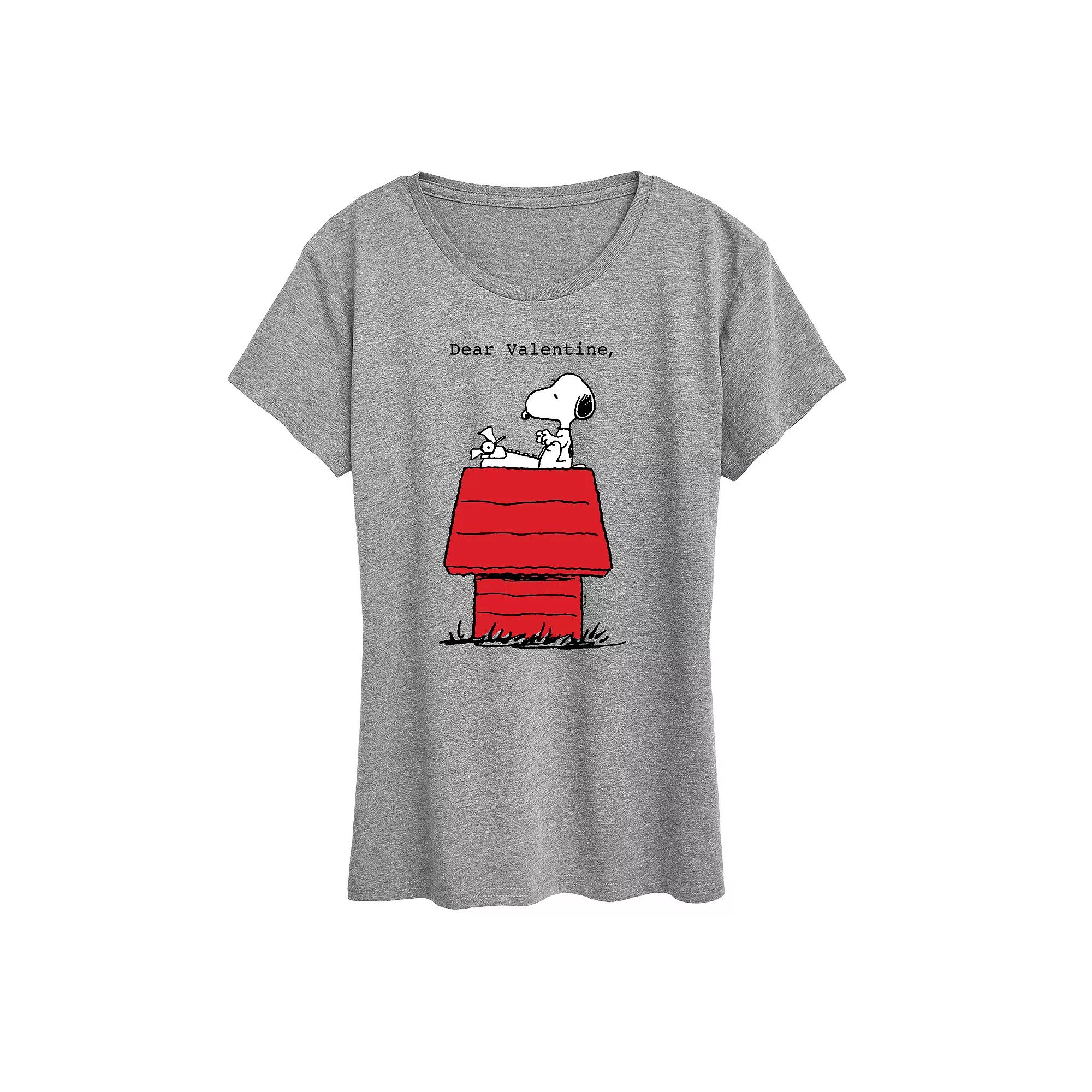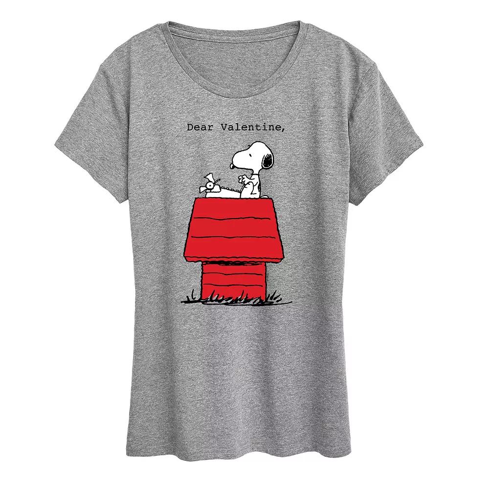 She will love showing off her style with this Womens Peanuts Snoopy Dear Valentine Graphic Tee. FEATURES Short sleeves CrewneckFABRIC & CARE Cotton/Polyester Machine wash Imported Size: X Large. Color: Med Grey. Gender: female. Age Group: adult.