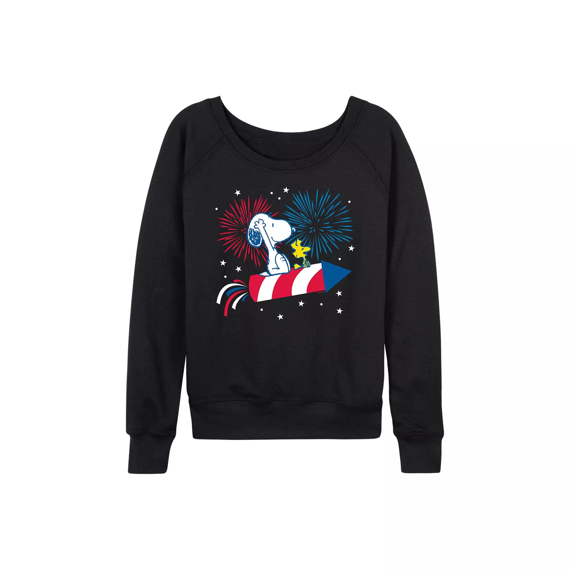 She will love showing off her style with this Women's Peanuts Snoopy & Woodstock Fireworks French Terry Long Sleeve Tee.FEATURES Long sleeves ScoopneckFABRIC & CARE Cotton/Polyester, French Terry Machine wash Imported Size: Small. Color: Black. Gender: female. Age Group: adult.