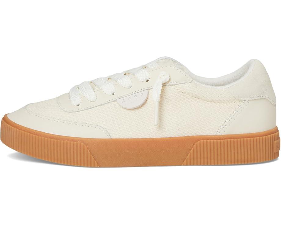 The Reef® Lay Day Seas is designed for days off and hours between surf sessions. The classic design and versatility means you can seamlessly go from work to the beach. Built with a unique hidden wedge insole, these shoes elongate your legs while providing the comfort of a classic sneaker. The hidden wedge insole is made from 3 parts, a 100% natural cork top layer, memory foam mid layer, and soft EVA bottom layer. The perforations add breathability while the rubber cupsole gives essential traction and durability. The rubber cupsole helps with better traction, grip and durability. The interior of the upper has hidden elastic & terry cloth lining for better walkability and comfort. The premium and sustainably sourced LWG leather upper with a padded tongue for extra comfort using recycled no tie laces.