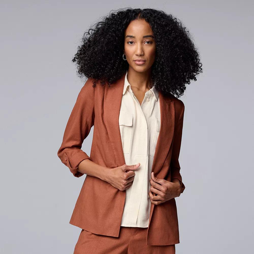 Layer on a fashionable look with this Womens Simply Vera Vera Wang Linen Roll Tab Blazer.Click on this WOMENS GUIDE to find the perfect fit and more! Layer on a fashionable look with this Womens Simply Vera Vera Wang Linen Roll Tab Blazer. Click on this WOMENS GUIDE to find the perfect fit and more! FEATURES 2 pockets No closure - open front Roll-tab sleeves Long sleeves Fully linedFIT & SIZING 29-in. length from shoulder to hemFABRIC & CARE Body: rayon, linen Lining: polyester Machine wash and tumble dry low Imported Size: Xxl. Color: Sweet Pecans. Gender: female. Age Group: adult.