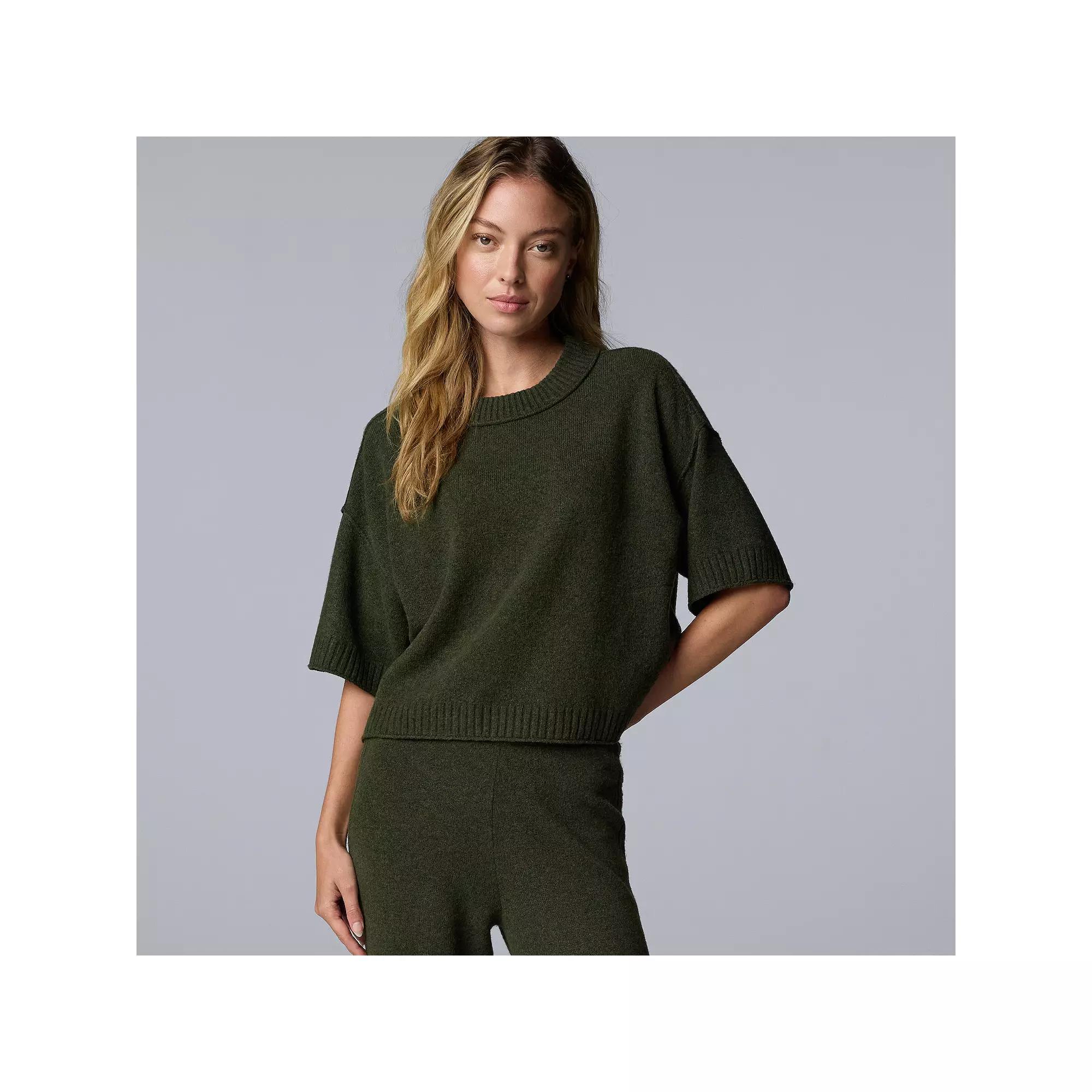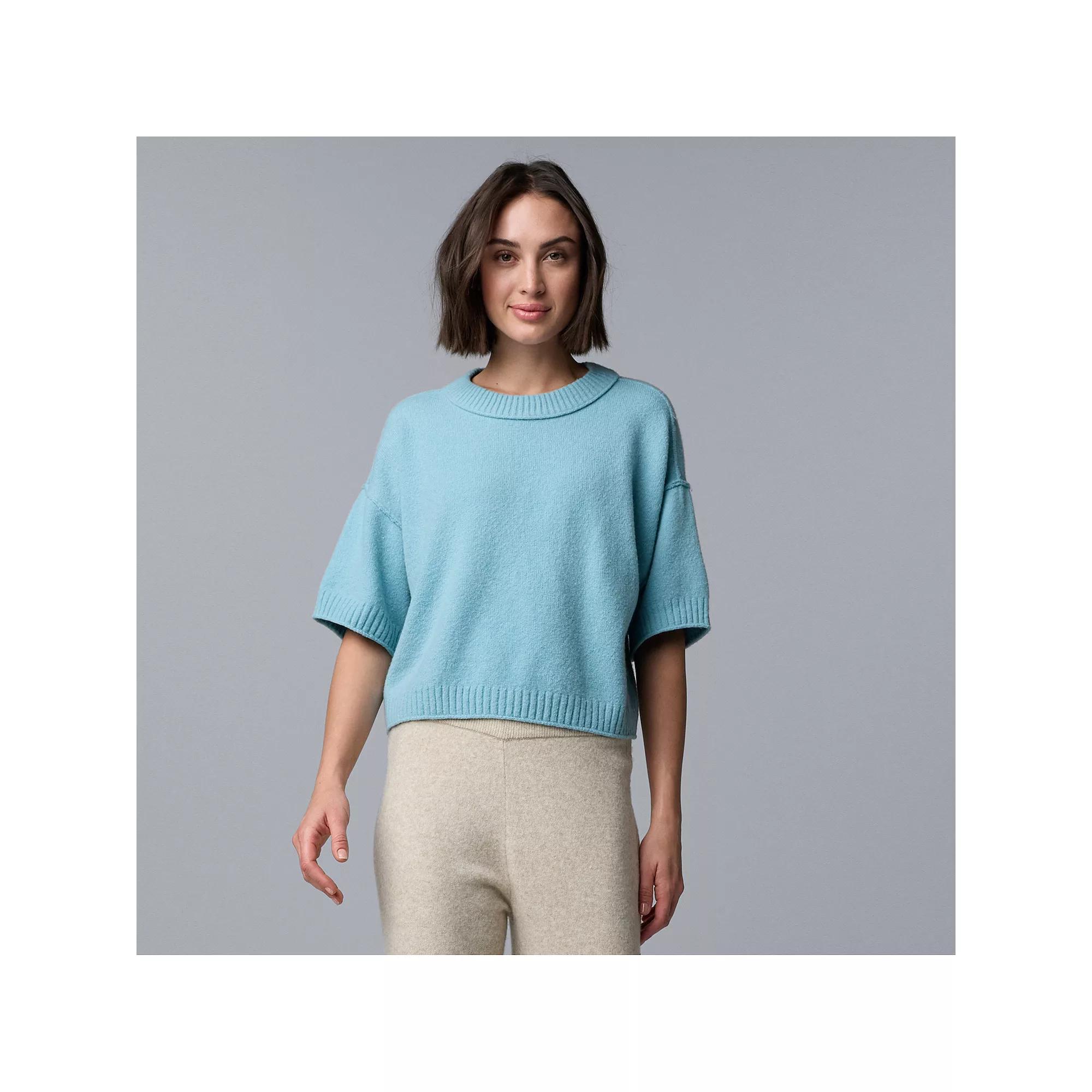 Elevate your everyday look with this Simply Vera Vera Wang short sleeve sweater that wraps you in cozy elegance. With its chic silhouette and relaxed fit, you'll be ready to tackle anything from brunch with friends to a cozy night in, all while radiating effortless style. Click on this WOMEN'S GUIDE to find the perfect fit and more! - https://www.kohls.com/feature/womens-fit-guide.jsp. FEATURES: Relaxed fit for easy movement. FIT & SIZE: True to size, 20-in. length from shoulder to hem, Straight hem. MATERIAL & CARE: Soft and comfortable jersey construction, Polyester, acrylic, nylon, spandex, cashmere, Machine wash. DETAILS: Pullover styling, Crewneck, Elbow sleeves, Set-in sleeves, Ribbed cuffs, Imported. Size: Large. Color: Mystic Gulf. Gender: female. Age Group: adult. Material: CASHMERE BLEND.