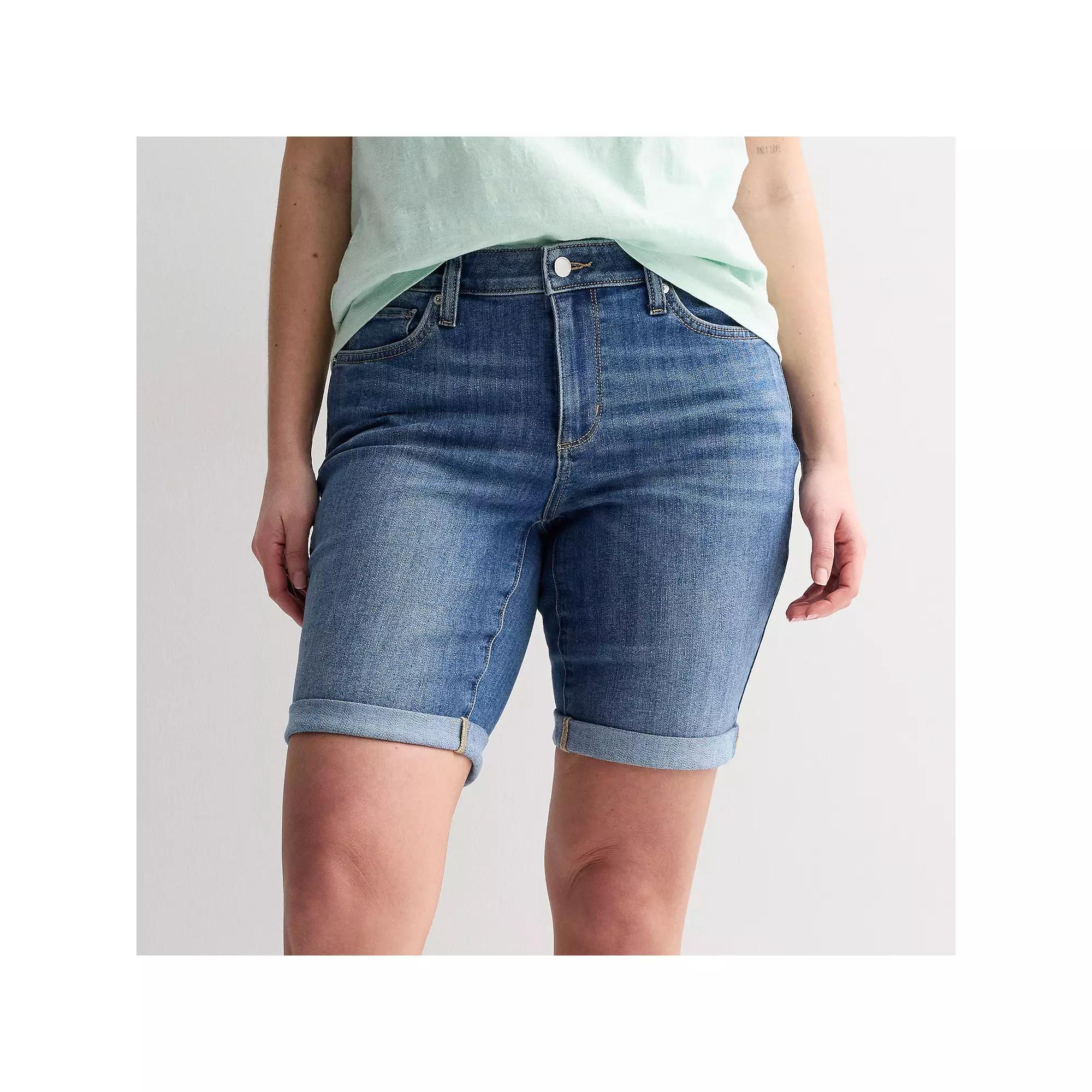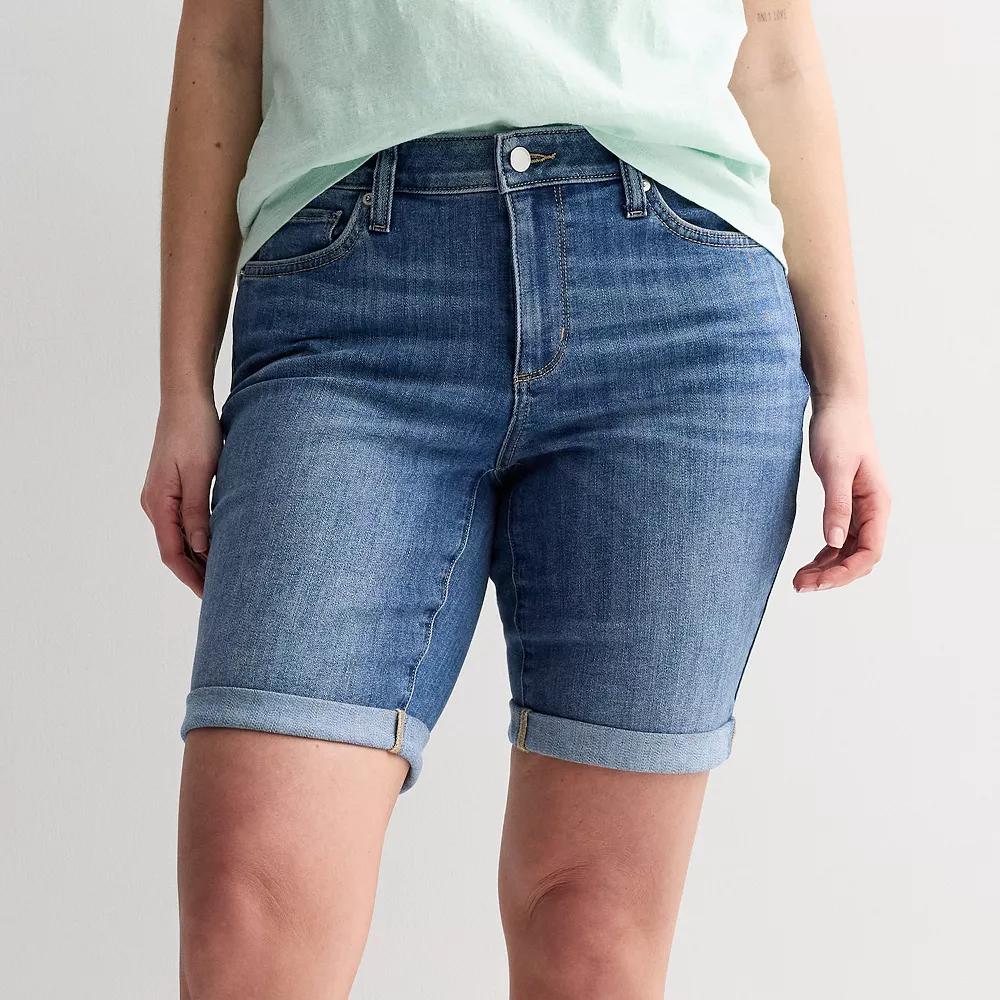 Get ready to turn heads this summer with these Sonoma Goods For Life shorts that effortlessly blend style and comfort. With a fun roll cuff design, they're perfect for those sunny days when you want to feel fabulous and relaxed while making every moment count. Click on this WOMEN'S GUIDE to find the perfect fit and more! - https://www.kohls.com/feature/womens-fit-guide.jsp. FEATURES: Comfortable construction, Curvy roll cuff design. FIT & SIZE: 10-in. length, Fitted through the hip and thigh, High rise sits below the natural waistline, 9-in. inseam, Straight 9 1/4-in. leg opening, Contour waistband. MATERIAL & CARE: Cotton, polyester, elastane, Lining: polyester, cotton, Machine wash and tumble dry. DETAILS: Button & zipper closure, 2 front pockets, 2 back pockets, 1 coin pocket, Imported. RESPONSIBLE Tested for harmful substances, STANDARD 100 by OEKO-TEX® CERTIFIED, Certification No. 2021OK0365, Testing Institute: AITEX®, www.oeko-tex.com/standard100 - https://www.oeko-tex.com/en/our-standards/oeko-tex-standard-100. Size: 14. Color: Bright Medium Wash. Gender: female. Age Group: adult. Material: DENIM.