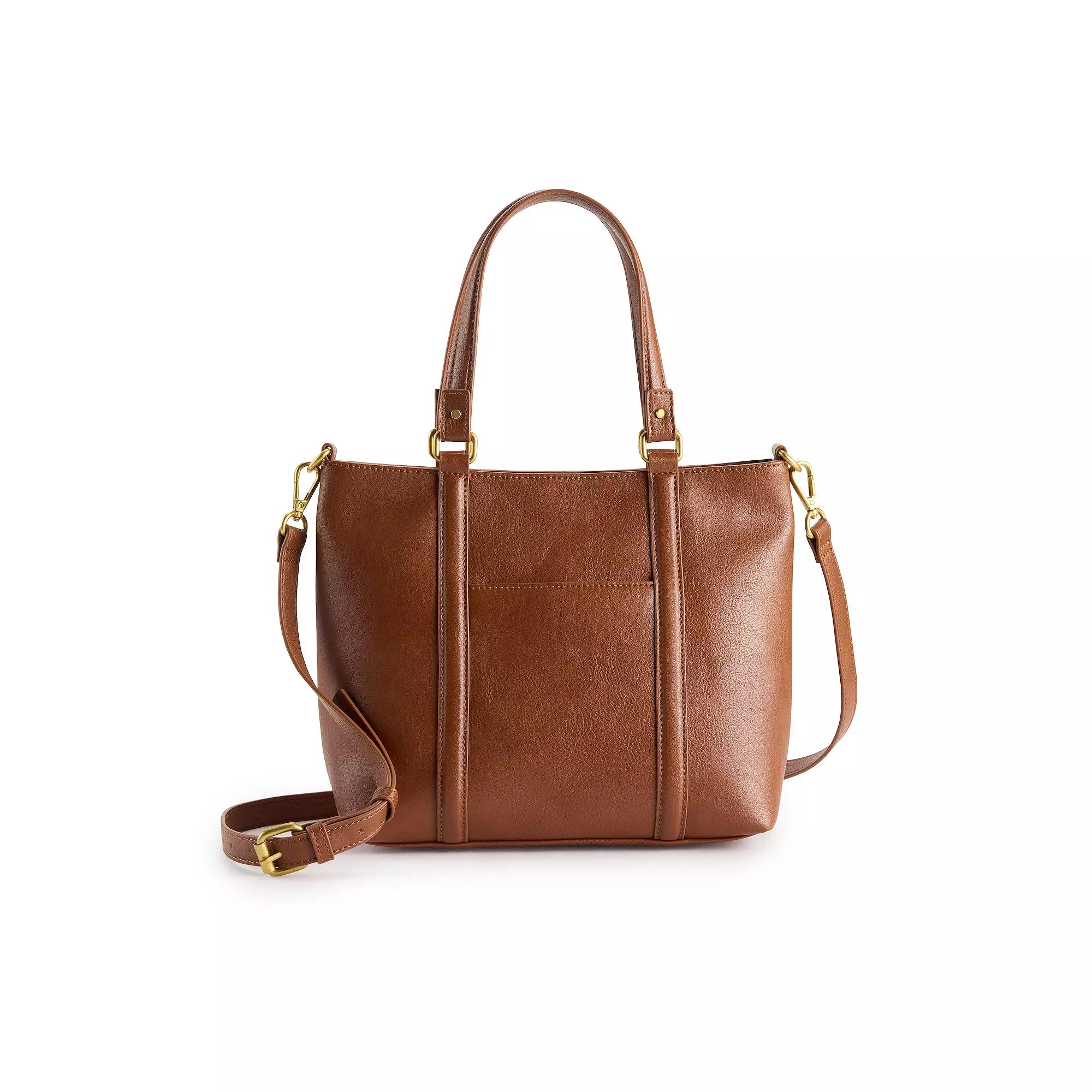 Make sure you are always fashionable and organized with this Sonoma Goods For Life shoulder bag. With an adjustable strap and plenty of pockets to keep you organized, you'll wonder how you ever went without this bag. How do you accessorize? Check out our ACCESSORIES GUIDE for essential tips to elevate your style with must-have accessories. - https://www.kohls.com/feature/accessories-guide.jsp. FEATURES: Adjustable strap for a perfect fit, Imitation leather gives a polished look. MATERIAL & CARE: PVC and polyurethane body, Polyester lining, Wipe clean. DETAILS: 9.38"H x 11.75"W x 5"D, Zipper closure, 2 interior front split pockets and 1 interior back zipper pocket, 1 exterior split pocket, 7.25-in. handle drop, 20.25 to 24.25-in. adjustable strap length, Phone pocket fits up to iPhone 15, Gold-tone hardware, Imported. Size: One Size. Color: Tuscan Cognac. Gender: female. Age Group: adult. Material: PU.
