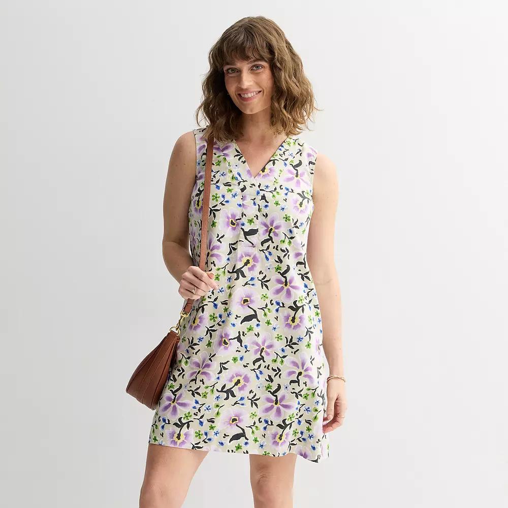 Discover the ultimate blend of comfort and style with this Sonoma Goods For Life dress, designed for those days when you want to feel effortlessly fabulous. Its loose fit makes it perfect for daily adventures, whether you're brunching with friends or enjoying a cozy evening at home. Click on this WOMEN'S GUIDE to find the perfect fit and more! - https://www.kohls.com/feature/womens-fit-guide.jsp. FEATURES: Loose-fit design for all-day comfort, Versatile style for daily wear. FIT & SIZE: Loose fit, A-line silhouette, 37-in. from shoulder to hem, Straight hem. MATERIAL & CARE: Body: 55/45 cotton viscose slub, 100% cotton twill (denim), Care: Machine wash and tumble dry low. DETAILS: Y-neck design, Sleeveless, Both side pockets. Size: Small. Color: Beige Purple Floral. Gender: female. Age Group: adult. Material: COTTON BLEND.
