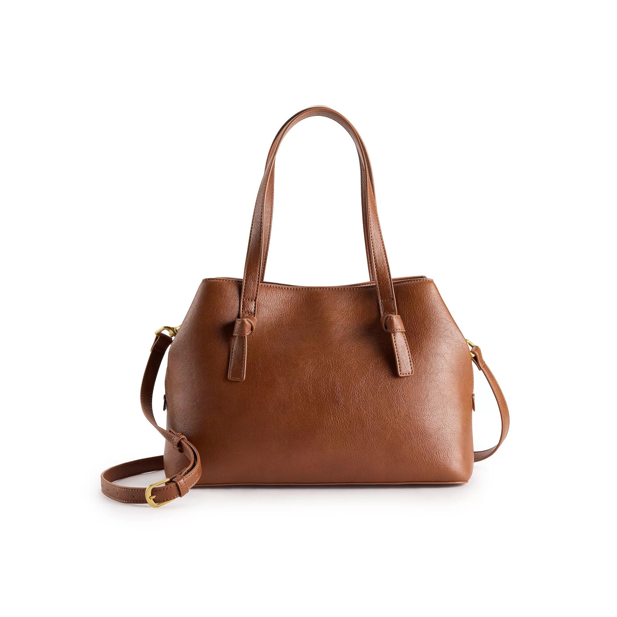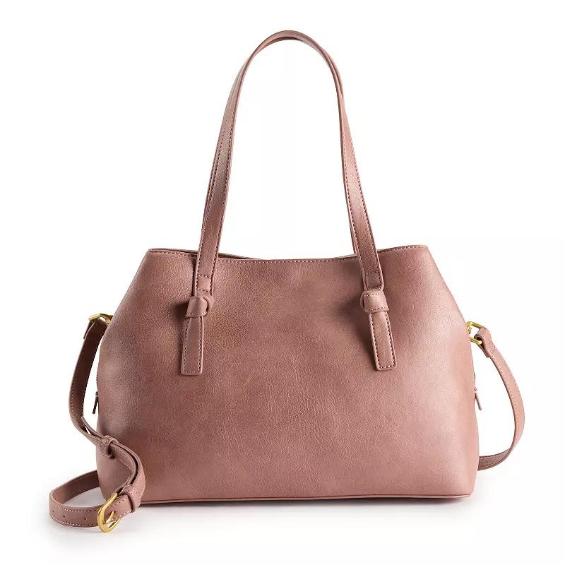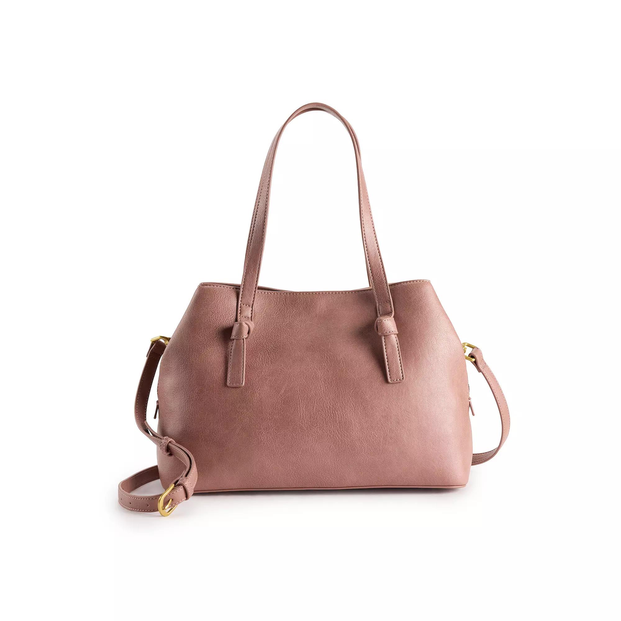 Carry your essentials around without sacrificing your style, thanks to this Sonoma Goods For Life satchel bag. With an adjustable strap and multiple pockets, you'll feel comfortable, organized, and fashionable wherever you go. How do you accessorize? Check out our ACCESSORIES GUIDE for essential tips to elevate your style with must-have accessories. - https://www.kohls.com/feature/accessories-guide.jsp. FEATURES: Imitation leather gives a polished look, Adjustable strap for comfortable fit. MATERIAL & CARE: PVC and polyurethane body, Polyester lining, Wipe clean. DETAILS: 9"H x 13.5"W x 5"D, Zipper and magnetic snap closure, 2 interior front split pockets and 1 interior back zipper pocket, 1 exterior back split pocket, 8-in. handle drop length, 21 to 25-in. adjustable strap length, Phone pocket fits up to iPhone 15, Gold-tone hardware, Imported. Size: One Size. Color: Lache Mauve. Gender: female. Age Group: adult. Material: PU.