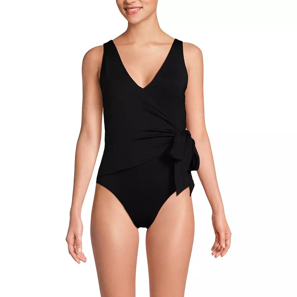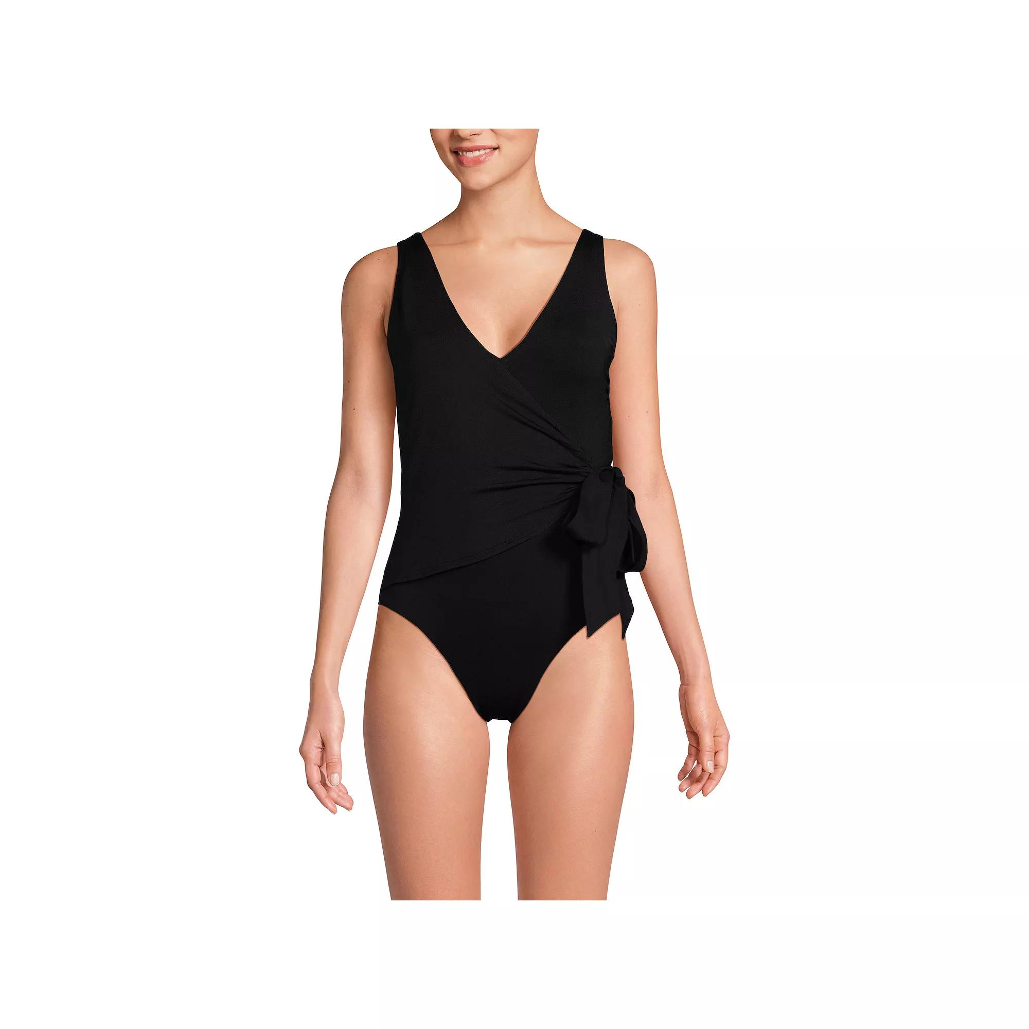 Dive into summer with this fabulous one-piece that effortlessly combines style and support. The surplice V-neckline and side tie not only flatter your figure but also provide ample support with sewn-in cups, ensuring you feel confident both in and out of the water. Size: 12D. Color: Black. Gender: female. Age Group: adult. Material: NYLON SPANDEX.