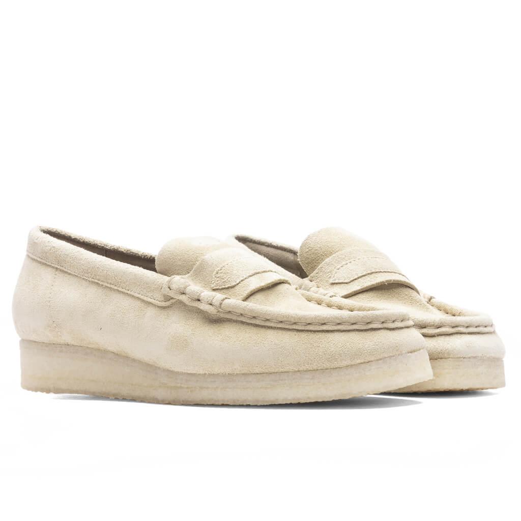 The archival Clarks Women's Wallabee Loafer takes on a new look for Autumn/Winter '23. Crafted from premium suede uppers, its chunky tonal sole nods to timeless design, while hand-stitched apron seams enhance its crafted look and feel. The part-recycled natural rubber pebble crepe sole adds a durable touch. Suede upper Leather lining Rubber pebble crepe outsole Hand-stitched apron seams Style No: 26173508