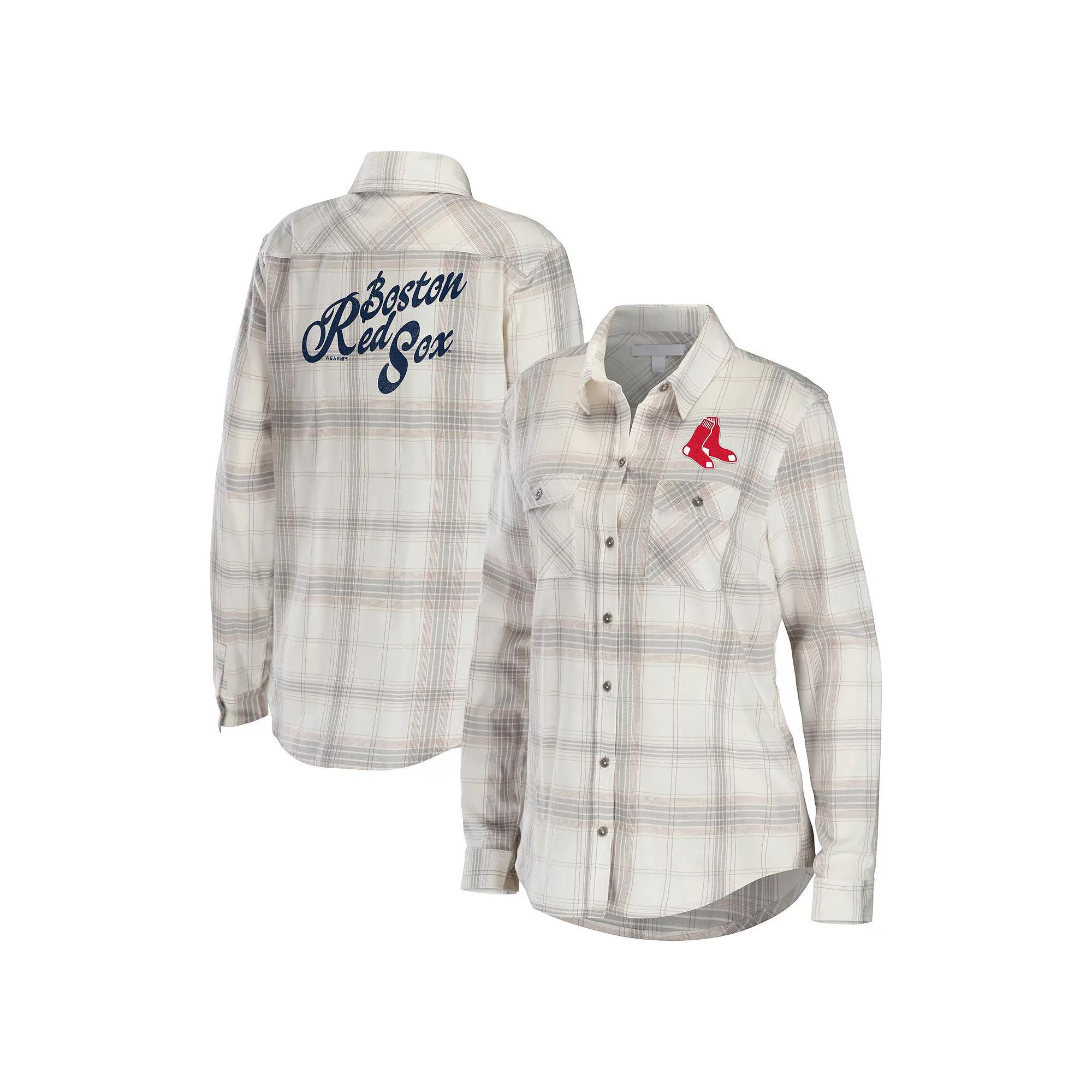 Women's WEAR by Erin Andrews Gray/Cream Boston Red Sox Flannel Button-Up Shirt,