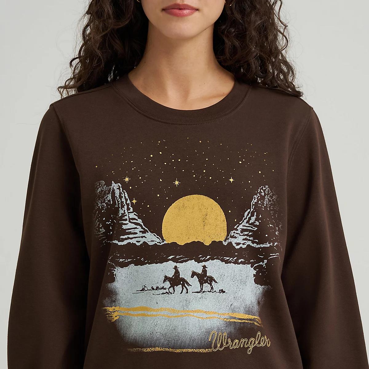 With cool weather on the horizon, this graphic crewneck sweatshirt will keep you comfy in true cowgirl style. It’s crafted from brushed terry, a soft cotton blend for warmth that won’t weigh you down. It has a regular fit that’s not too tight or too loose, just perfect for layering when you need to. Plus, you’ll have a colorful Western-inspired graphic to ground your look in authenticity.