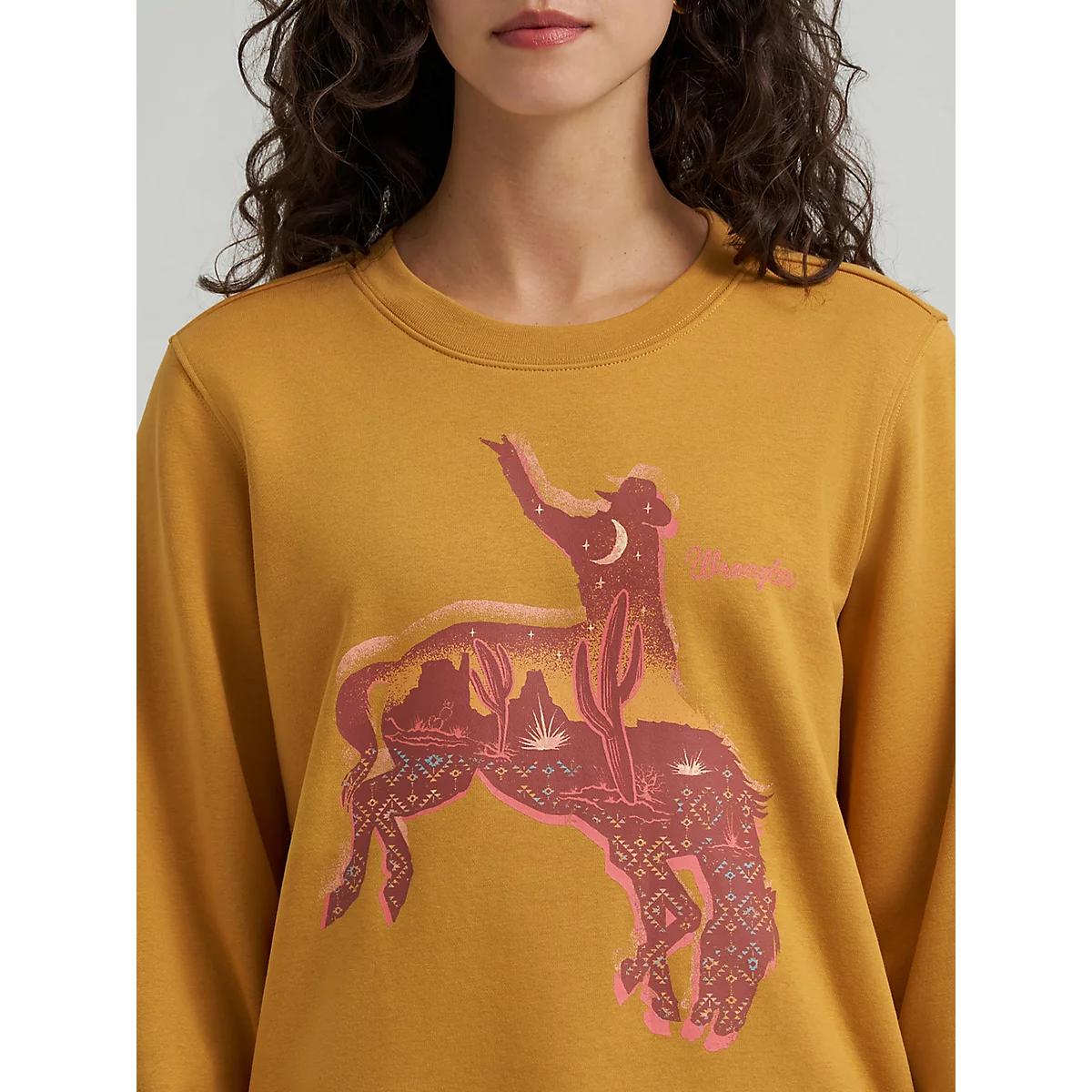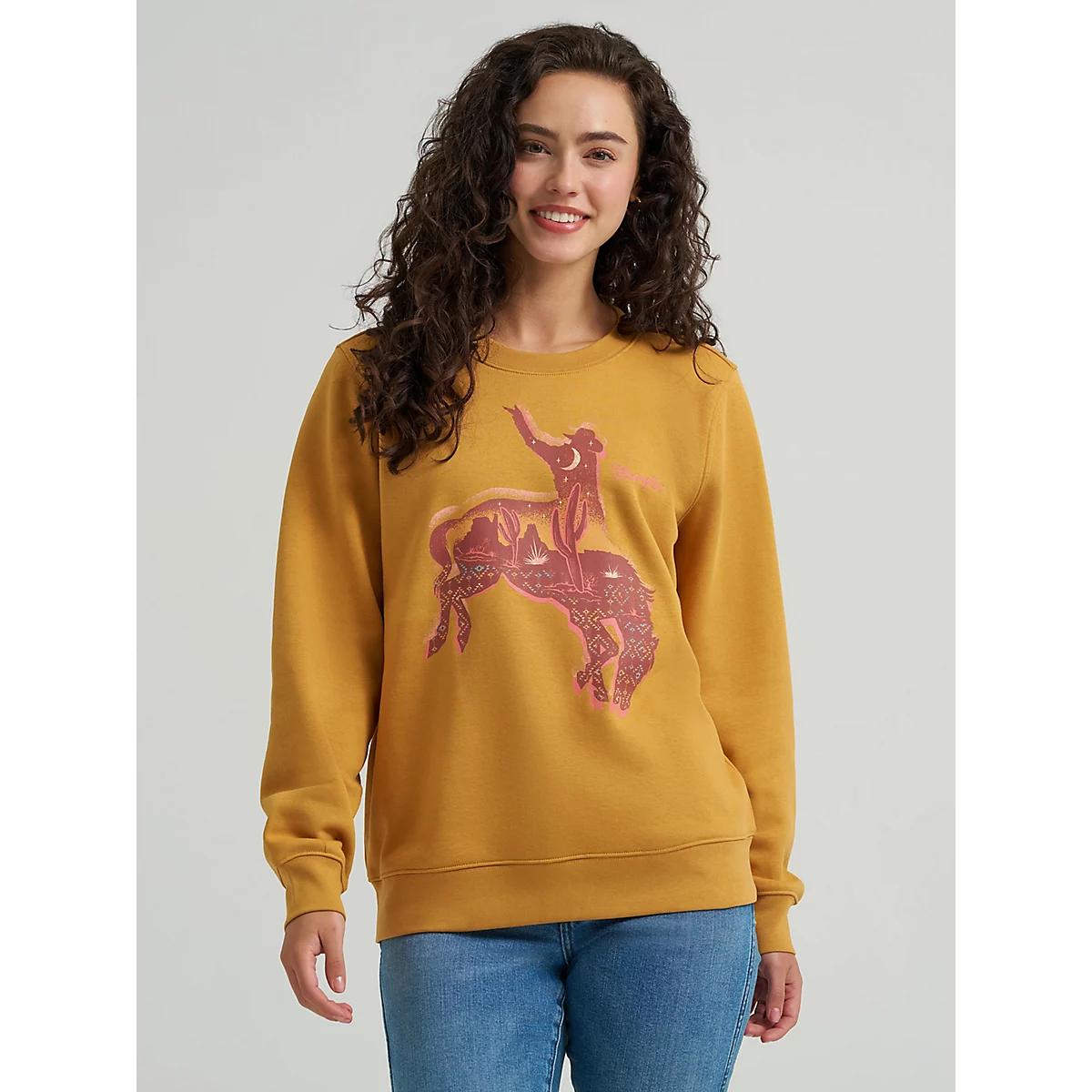 With cool weather on the horizon, this graphic crewneck sweatshirt will keep you comfy in true cowgirl style. It’s crafted from brushed terry, a soft cotton blend for warmth that won’t weigh you down. It has a regular fit that’s not too tight or too loose, just perfect for layering when you need to. Plus, you’ll have a colorful Western-inspired graphic to ground your look in authenticity.