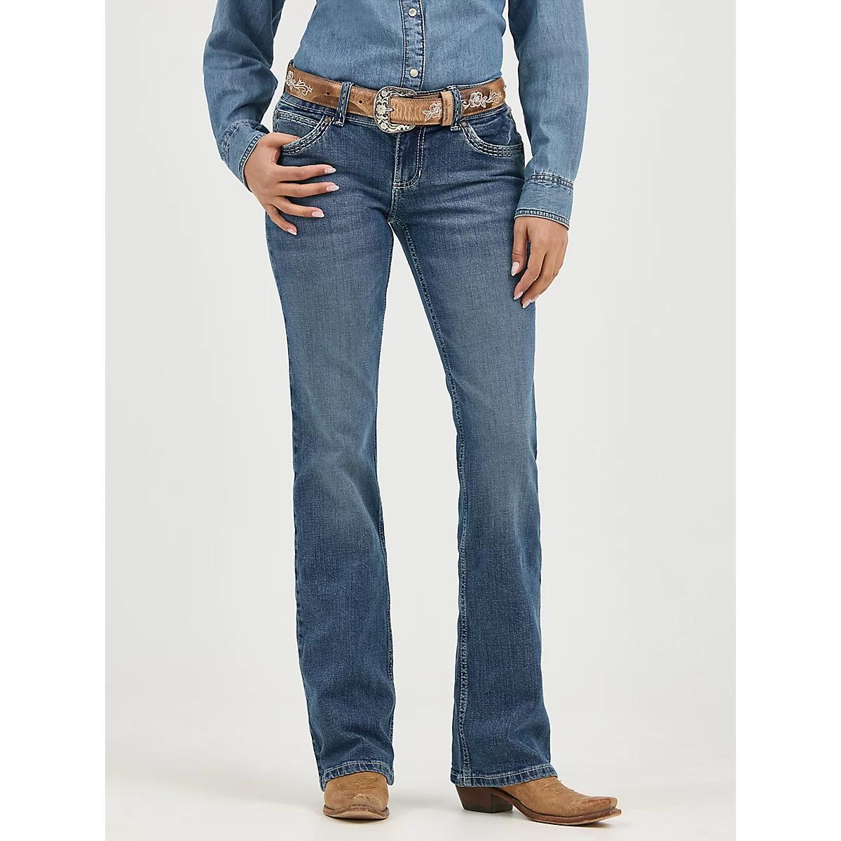 WOMEN'S BOOTCUT JEANS WITH A LOW-RISE, RETRO TWISTCombining the authentic Wrangler® details you know and love with new washes and fits, the Wrangler® Retro® collection strikes a contemporary chord while paying tribute to our Western roots. Affectionately known as Sadie, our women's low-rise bootcut jeans offer the comfort and durability you need as well as a stylish back pocket design for extra personality. women's low-rise jeans sit right at the hips, making them perfect for showing off a favorite belt. These women's Retro® jeans also feature a low-rise fit and leg that hugs through the thigh and knee before releasing downward to fit over boots. When it comes to building cowgirl credentials in a modern way, Wrangler® Retro® jeans have you covered.