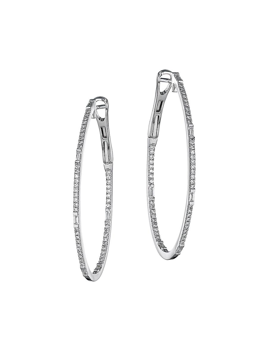 ONLY AT SAKS. Made of 14K gold, these exquisite oval hoop earrings sparkle with pav and baguette white diamonds. Diamonds, 0.44 tcw Diamond color: GH Diamond clarity: SII 14K gold Lever back Imported SIZE Drop, about 1.50. Fashion Jewelry - Sfa Jewelry > Saks Fifth Avenue Collection > Saks Fifth Avenue > Barneys. Saks Fifth Avenue Collection. Color: White Gold.