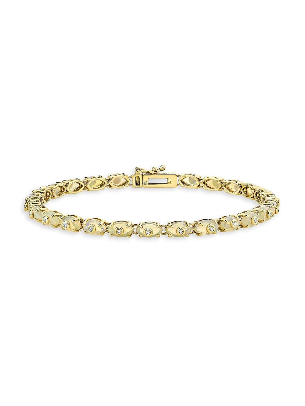 Crafted of 14K yellow gold, Sydney Evans tennis bracelet features luminous marquise-cut opals centered by shimmering round diamonds. Diamonds, 0.15 tcw Diamond color grade: H-I Diamond clarity grade: SI2 Opals 14K yellow gold Box clasp with safety latch Imported SIZE About 6.75L. Fashion Jewelry - Fashion Designer > Sydney Evan > Saks Fifth Avenue > Barneys. Sydney Evan. Color: Yellow Gold.