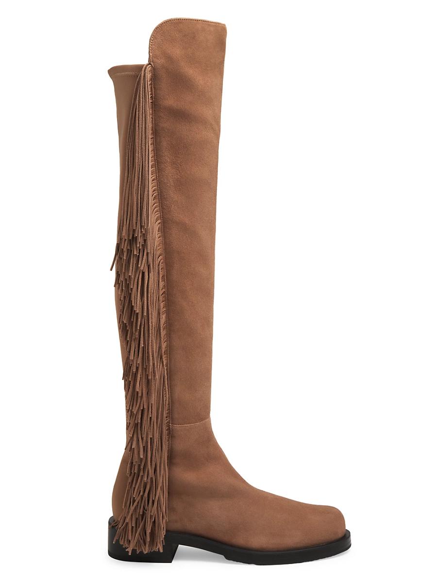Stuart Weitzmans 5050 Bold Fringe boots are a modern take on the classic silhouette. Crafted in Spain, these boots feature a leather and stretch gabardine lining for comfort, and a durable TPU sole. Round toe Pulls on Leather/gabardine TPU sole Made in Spain ABOUT THE BRAND Designer Stuart Weitzman started his career designing for his fathers shoe company, before launching his own brand in 1986. Known for his glamorous pumps and over-the-knee boots, Weitzman has also incorporated unique materials in his designs, ranging from Lucite and wallpaper to cork, vinyl and even gold. Today, the label continues to create classic, feminine silhouettes that balance both comfort and style. Womens Shoes - Stuart Weitzman Wmn Shoe > Stuart Weitzman > Saks Fifth Avenue > Barneys. Stuart Weitzman. Color: Camel. Size: 11.
