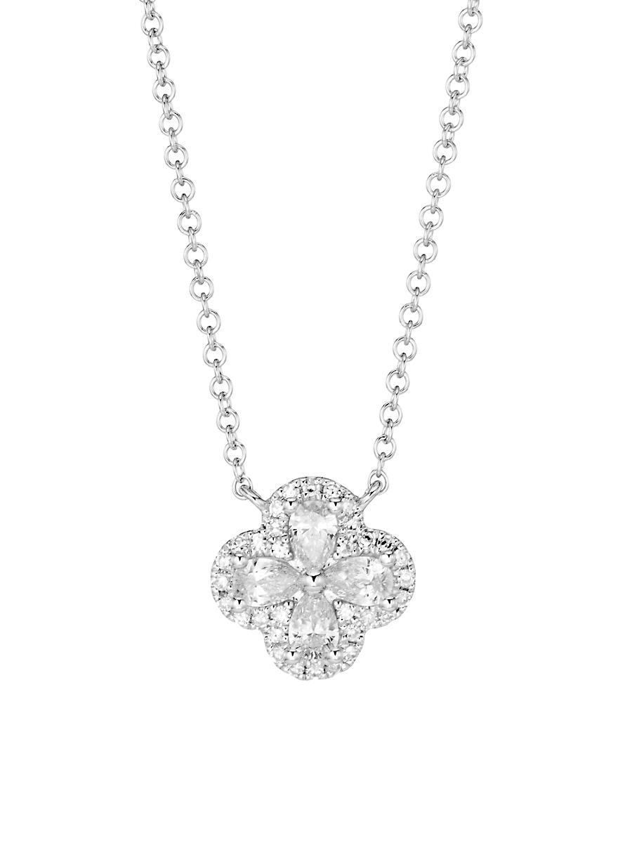 ONLY AT SAKS. From the Adelle Collection. Crafted of 14K-white-gold, this necklace features a clover pendant accented glittering diamonds suspended from a delicate chain. Diamond, 0.41 tcw 14K-white-gold Lobster clasp Imported SIZE Adjustable 18 length Pendant size, about 0.40L x 0.40W. Fashion Jewelry - Sfa Jewelry > Saks Fifth Avenue Collection > Saks Fifth Avenue > Barneys. Saks Fifth Avenue Collection. Color: White.