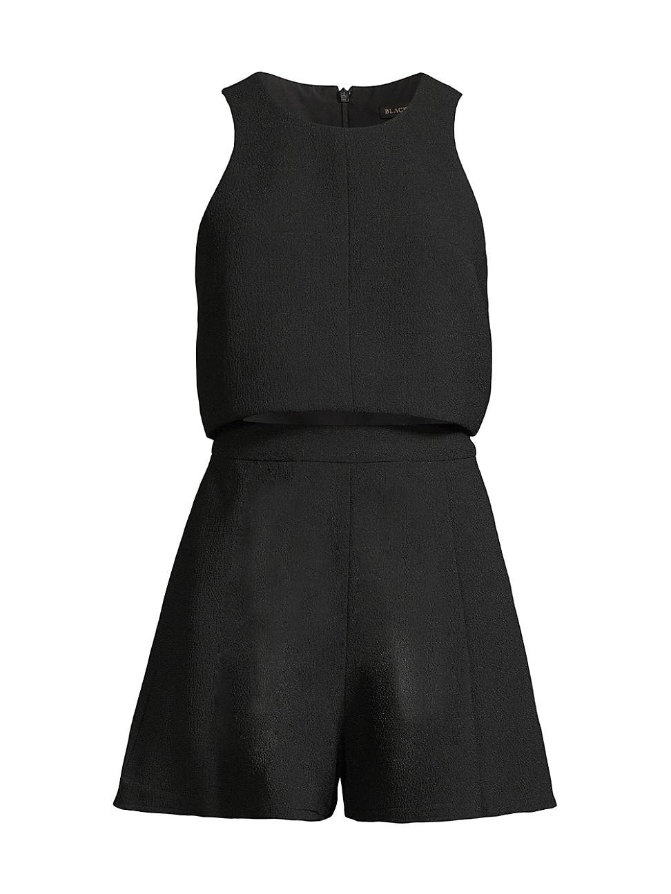 From the Black Halo x Laurel Berman Collection. This pebbled crepe two-piece Sanibel romper features a sleeveless, slightly cropped top and pleated high-waist shorts. Jewel neck Sleeveless Banded waist Back zip closure 99% polyamide/1% elastane Dry clean Made in USA of imported fabric SIZE & FIT Inseam, about 3 Model measurements: 61 tall, 37 bust, 30.5 waist, 37 hips Model is wearing a US size 4 For basic alterations and hemming, b ook an appointment online at your local Saks Fifth Avenue location. Dress Collections - Contemporary Evening > Black Halo > Saks Fifth Avenue > Barneys. Black Halo. Color: Black. Size: 10.