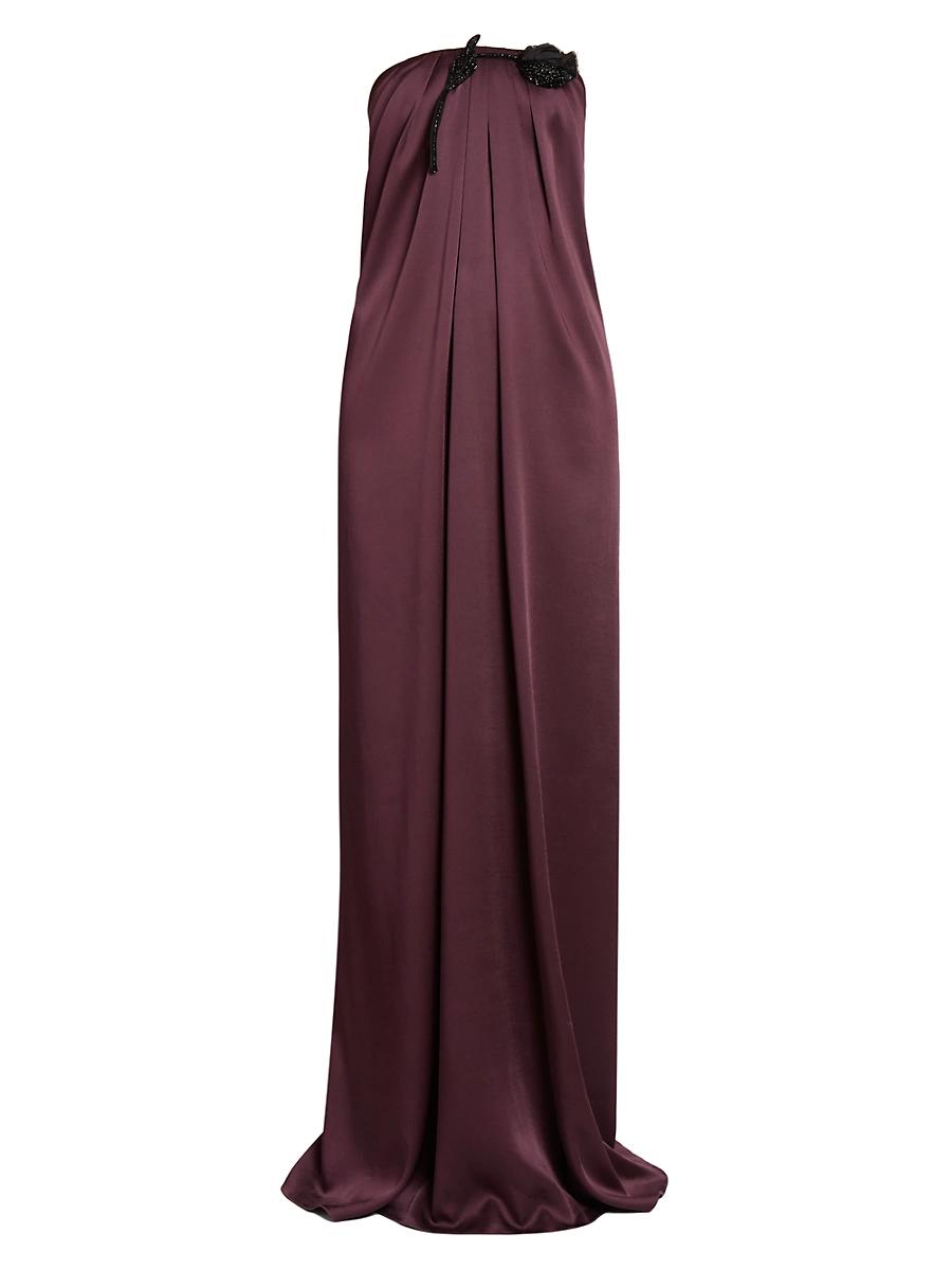 Made in Portugal, this striking Erdem strapless satin gown is detailed with a removable beaded bud brooch at the neckline. Bandeau neck Bustier bodice Strapless Concealed back zip closure 71% acetate/29% viscose Dry clean Made in Portugal SIZE & FIT Model measurements: 510 tall Model is wearing a US size 4. Advanced European - Erdem > Erdem > Saks Fifth Avenue > Barneys. Erdem. Color: Elderberry. Size: 2.
