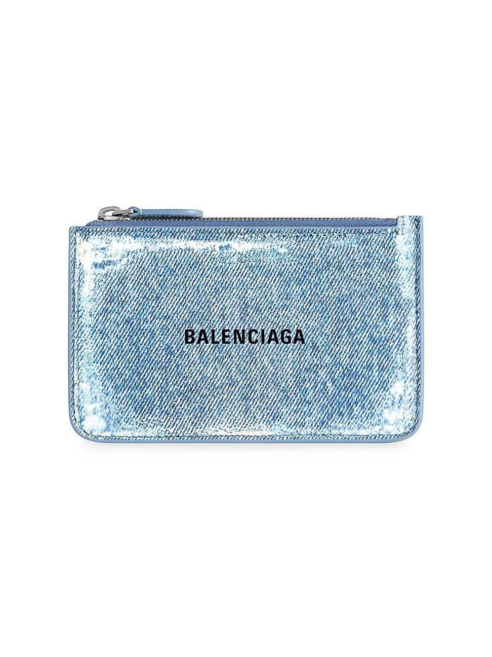 Cash Large Long Coin And Card Holder in denim printed Nappa lambskin. Denim printed Nappa lambskin Large long coin and card holder Rounded edges Balenciaga logo printed at front Aged-silver hardware 1 zipped coin pouch 1 receipt compartment 5 card slots Wipe with a soft cloth Made in Italy SIZE Dimensions: L 5.5 x H 2.9 x W 0.4. Lsd Handbags - Balenciaga > Balenciaga > Saks Fifth Avenue > Barneys. Balenciaga. Color: Blue.