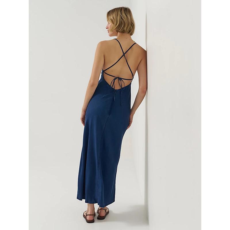 Slip into something more comfortable. This denim maxi is designed to fit like your favorite slip dress, from the feminine v-neckline to the structured seams that give it extra flow along the front. With an open back that cinches with a crossed tie, it’s a more delicate take on a classic. 64% Lyocell, 36% Modal. Frozen In Time. L.