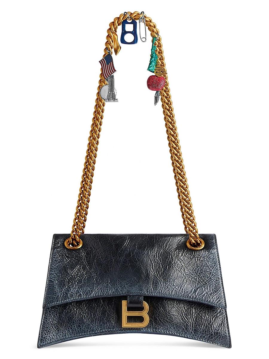 Dimensions: L 9.8 x H 5.9 x W 3.1 inch Dirty effect on Arena lambskin with NY souvenirs charms Chain bag Curvilinear base Shoulder and crossbody chain strap (19.6 inch) Charms attached to the chain Aged-gold B logo hardware 100% lambskin Made in Italy. Lsd Handbags - Balenciaga > Balenciaga > Saks Fifth Avenue > Barneys. Balenciaga. Color: Multicolor Blue.