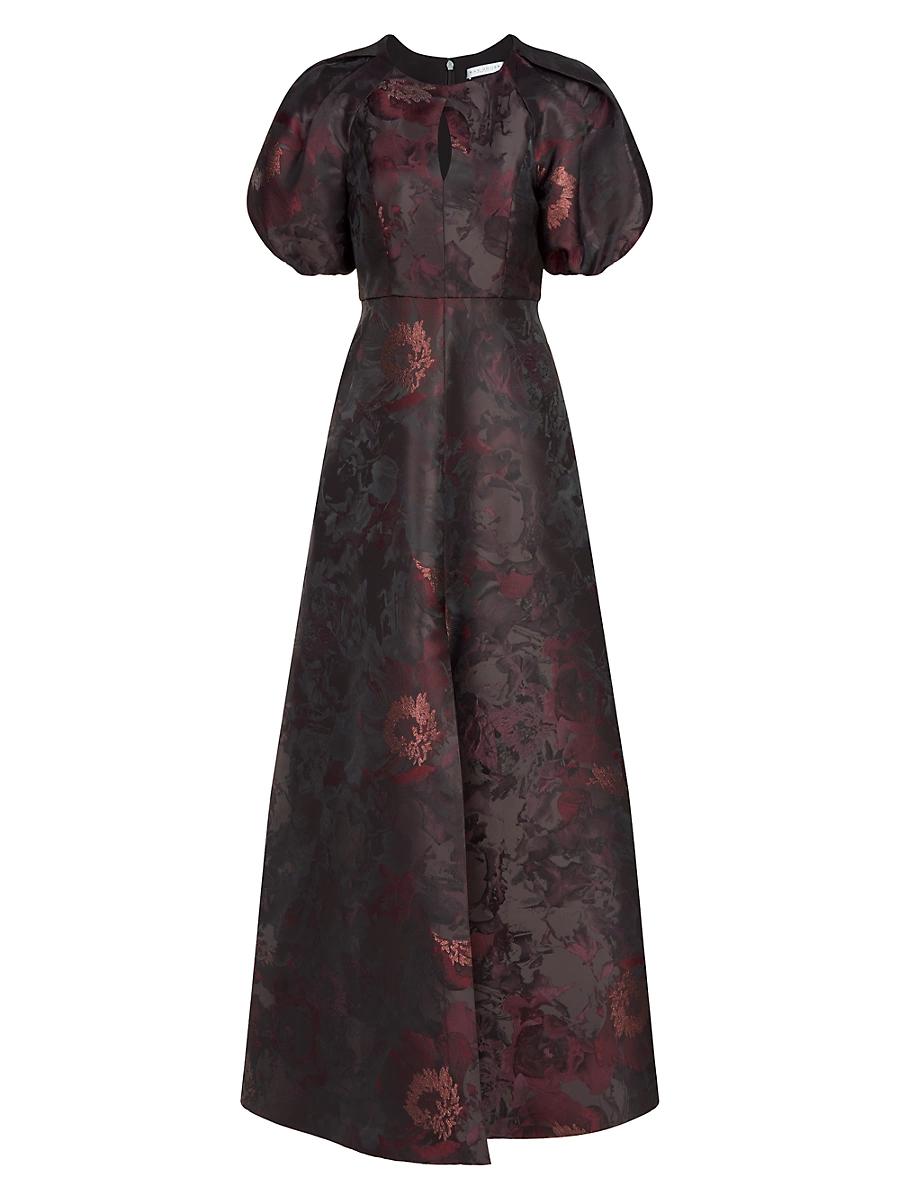 Crafted of taffeta, Kay Ungers evening gown showcases a moody floral jacquard design and dramatic puff sleeves. Side-seam pockets and a keyhole jewel neck finish the A-line piece. Jewel neck Short puff sleeves Back-zip closure 100% polyester Dry clean Imported SIZE & FIT About 60.5 from shoulder to hem Model measurements: 510 tall Model is wearing a US size 4. Dress Collections - Kay Unger Evening > Kay Unger > Saks Fifth Avenue > Barneys. Kay Unger. Color: Espresso Multi. Size: 8.
