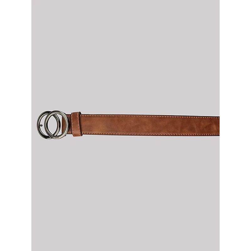 An accessory here to compliment the sleekest looks, our Women’s Double Ring Buckle Belt is always ready to elevate an outfit. This leather belt features a classy overlapping ring buckle and leather loop to keep excess in place. With multiple notches to fit your body perfectly, this is the belt to reach for when “sophisticated” is the look. 100% PU Leather. Cognac. S.