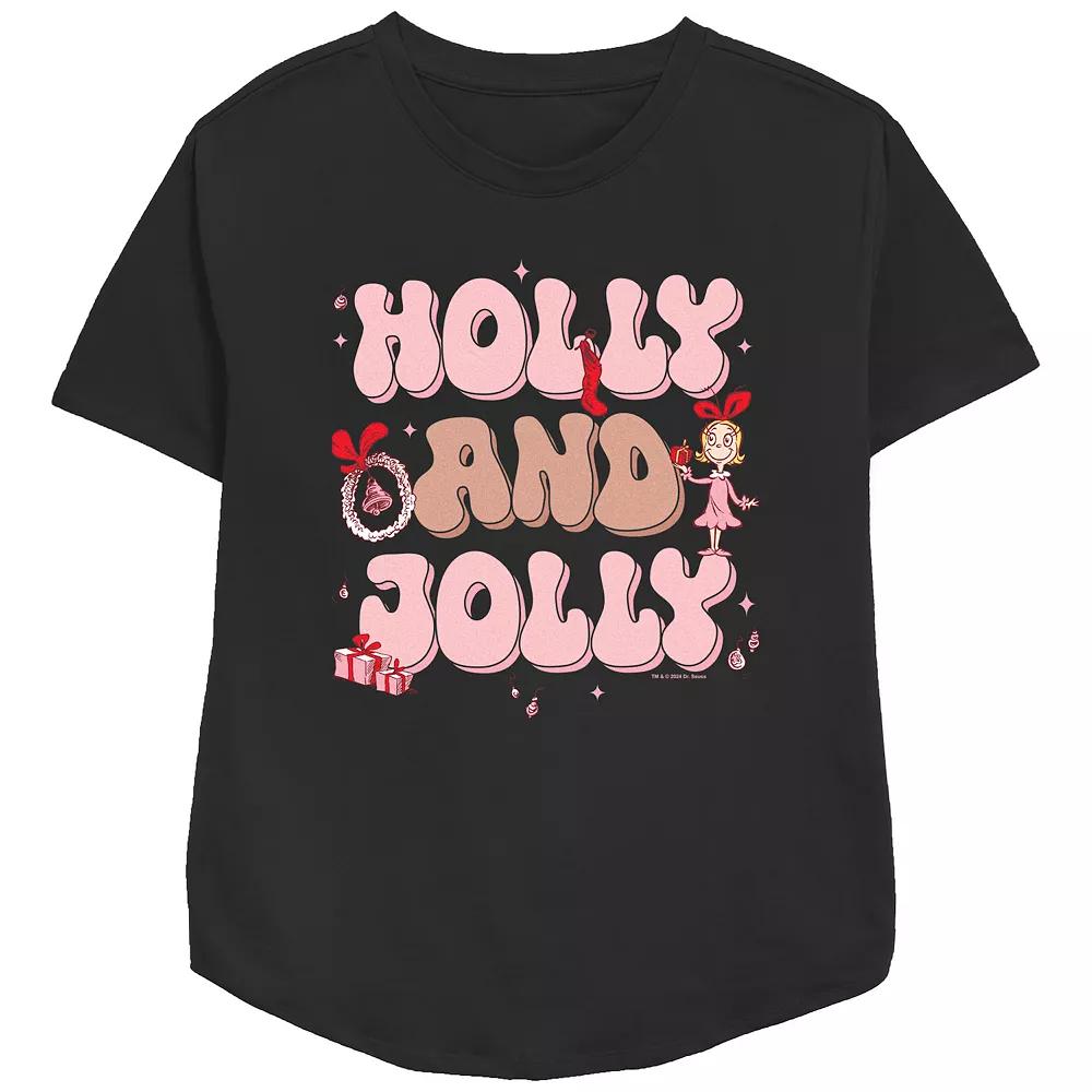 Shell love celebrating the Holiday season with this Womens Dr. Seuss Cindy-Lou Who Holly And Jolly Relaxed Fit Graphic Tee. FEATURES Crewneck Short sleevesFABRIC & CARE Cotton, polyester Machine wash Imported Size: X Small. Color: Black. Gender: female. Age Group: adult.