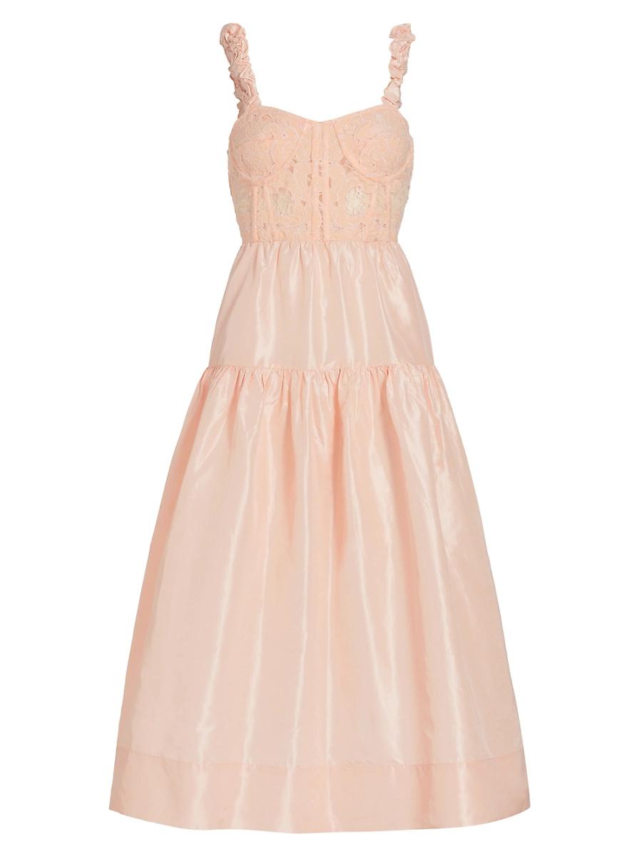Pieced styling defines Seas Evita Dress, cut to a midi length with an embroidered corset bodice and a tiered taffeta skirt. Sweetheart neckline Ruffled shoulder straps Concealed back zip Boned bodice Seamed waist On-seam pockets Tiered A-line skirt Cotton lining Polyester Dry clean Imported SIZE & FIT Fit-&-flare silhouette About 52 from shoulder to hem Model measurements: 510 tall Model is wearing a US size 4. Contemporary Sportswear - Workshop > Sea > Saks Fifth Avenue > Barneys. Sea. Color: Powder. Size: 6.