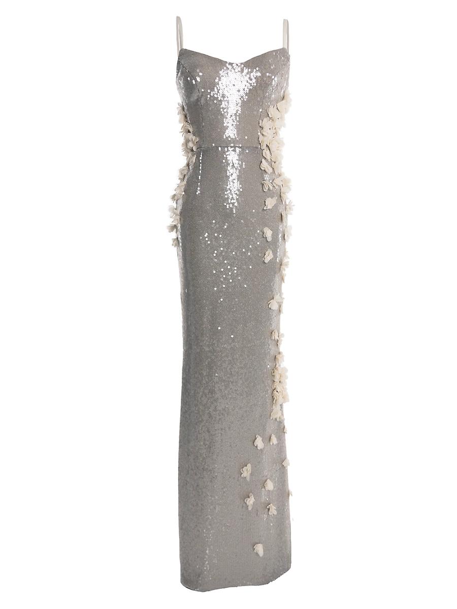 Dress The Populations Giovanna dress is designed with shimmering sequins and styled with applied flowers on each side. V-neck Adjustable straps Seamed waist Mermaid hem Concealed back zip closure 95% polyester/5% spandex Lining: 95% polyester/5% spandex Hand wash Imported SIZE & FIT About 60.5 from shoulder to hem Model measurements: 510 tall Model is wearing a US size Small. Dress Collections - Contemporary Evening > Dress The Population > Saks Fifth Avenue > Barneys. Dress The Population. Color: Dark Pearl. Size: Small.