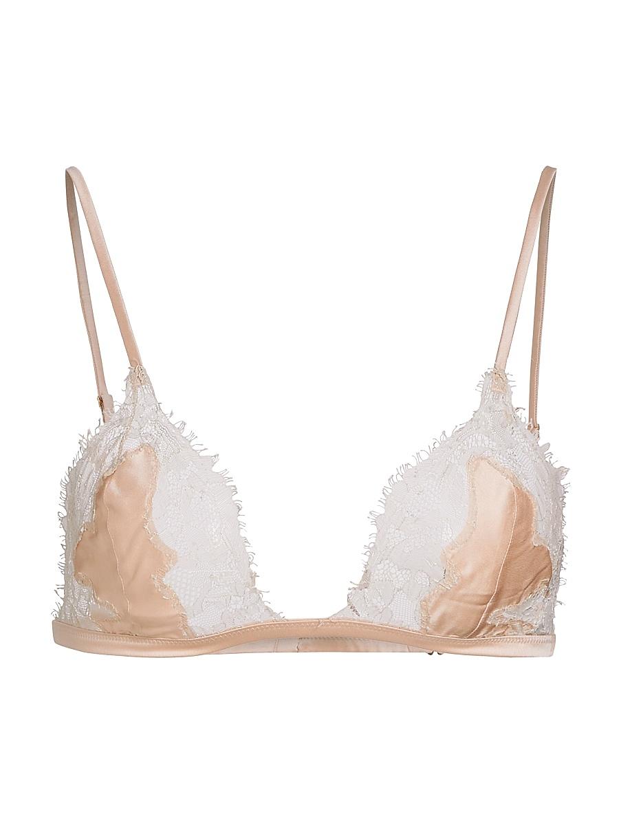 From the Giselle Collection. Crafted of silk satin, Kiki de Montparnasses soft bra is inset with sheer lace. Adjustable straps Back hook-and-bar closure 90% silk/10% elastane Hand wash Imported SIZE & FIT Model measurements: 510 tall Model is wearing a US size Extra Small. Lingerie - Designer Foundations > Kiki De Montparnasse > Saks Fifth Avenue > Barneys. Kiki de Montparnasse. Color: Blush Sucre. Size: Large.