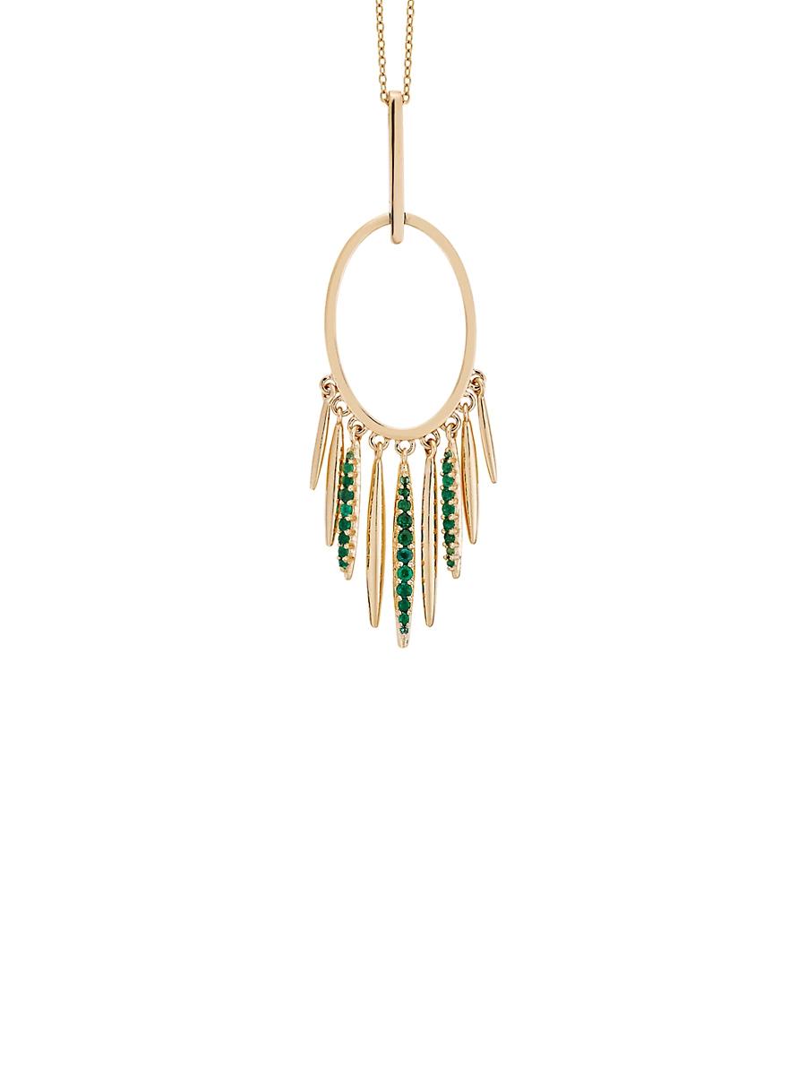 From the Grass Collection. Fringed yellow gold and emerald accents adorn this pendant necklace. 18K yellow gold Emeralds Lobster clasp Made in Greece SIZE Pendant drop, about 2.16 Length, about 19.8. Fashion Jewelry - Designer Fine Jewelry > Ileana Makri > Saks Fifth Avenue > Barneys. Ileana Makri.
