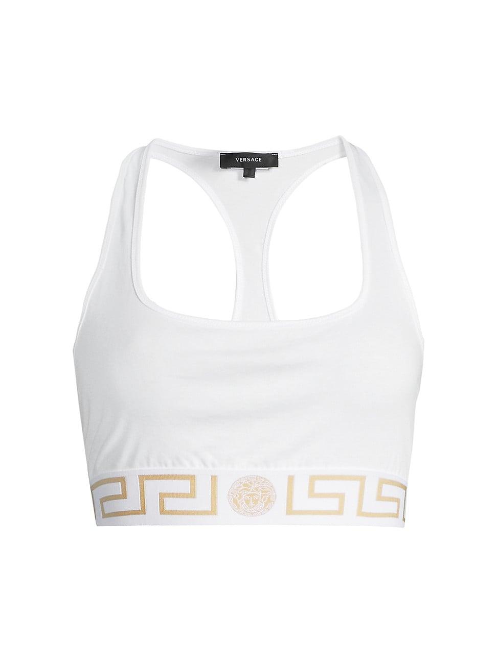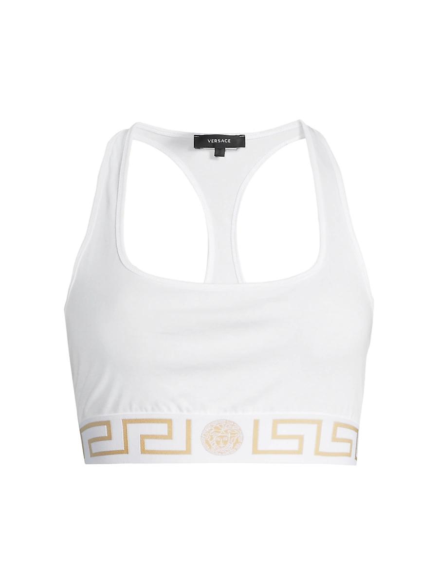 Detailed with a Greek key pattern border and the houses iconic Medusa medallion, this sports bra is styled with a rounded square neck and racer back. Rounded squareneck Racer back Pullover style Polyamide/elastane Lining: nylon/elastane Hand wash Made in Italy SIZE Model measurements: 61 tall. 37 chest, 30.5 waist, 37 hips ABOUT THE BRAND Founded in 1978, Versace is instantly recognizable by the signature Medusa head logo, chosen by founder Gianni Versace for its Greek symbolism. The Italian label is known for its luxe, bold clothing and accessories-think gilding, oversized logos and punchy prints. Since taking over artistic direction, Giannis sister Donatella Versace has maintained the brands strong identity, with a renewed vision to give customers the ultimate freedom to express themselves. Lingerie - Designer Foundations > Versace > Saks Fifth Avenue > Barneys. Versace. Color: Light Pink. Size: Small.